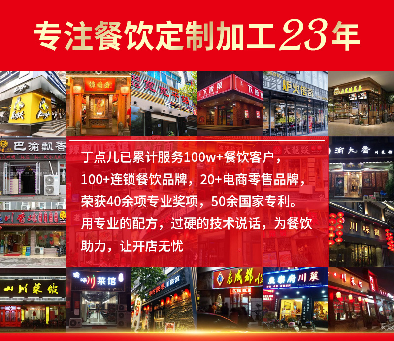 四川丁点儿食品开发股份有限公司,是集川菜调味料研发、生产、销售、服务为一体的现代化企业,专注为餐饮客户提供川菜调味解决方案。公司成立至今,服务了超百万家的餐饮门店以及连锁品牌。