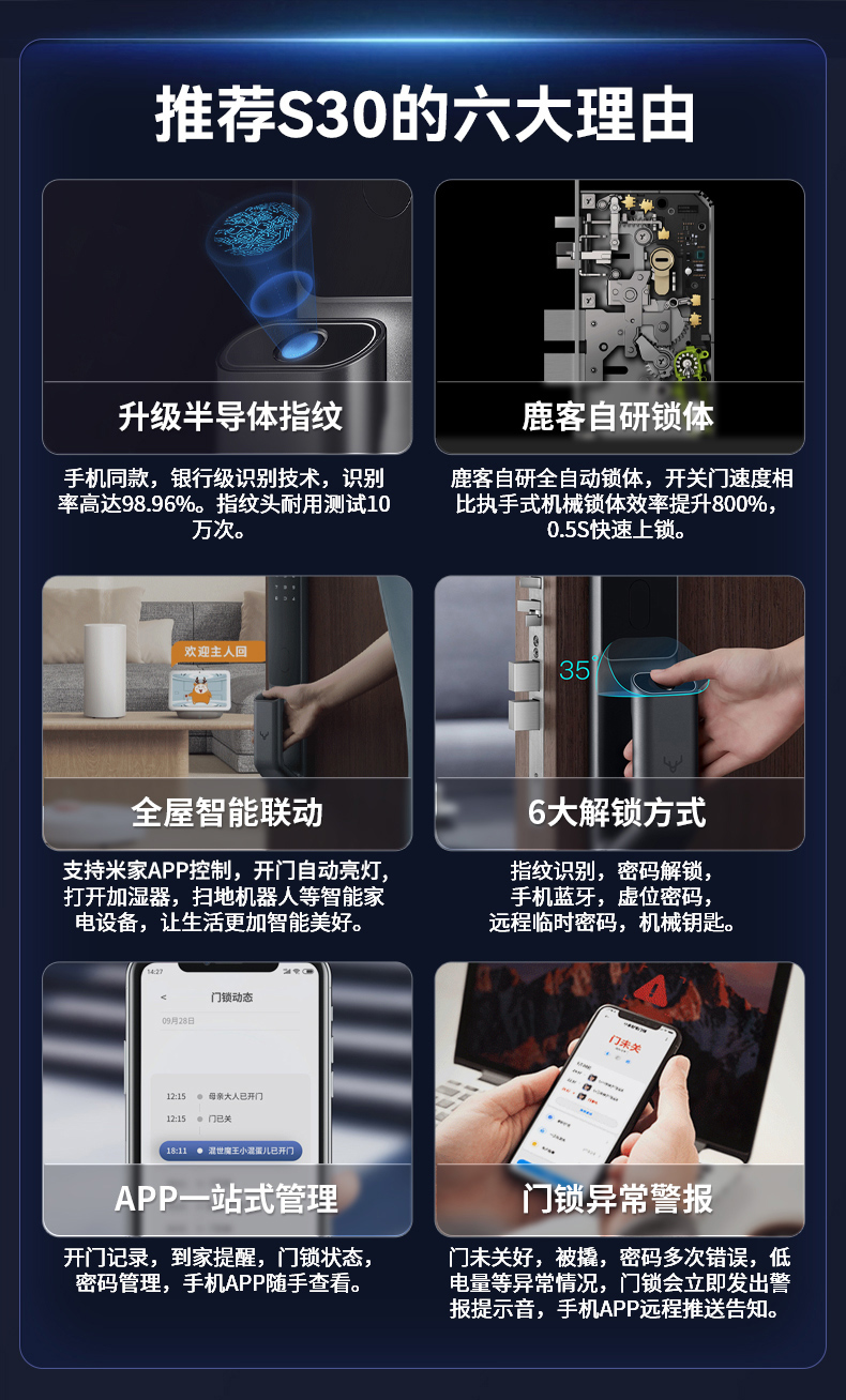 鹿客全自动智能锁密码锁指纹锁家用推拉防盗门电子锁防盗锁S30