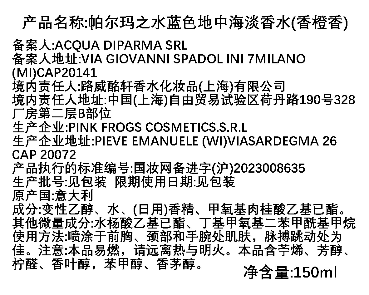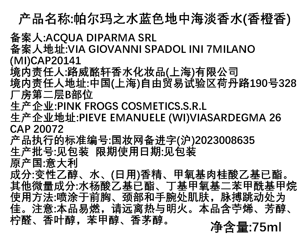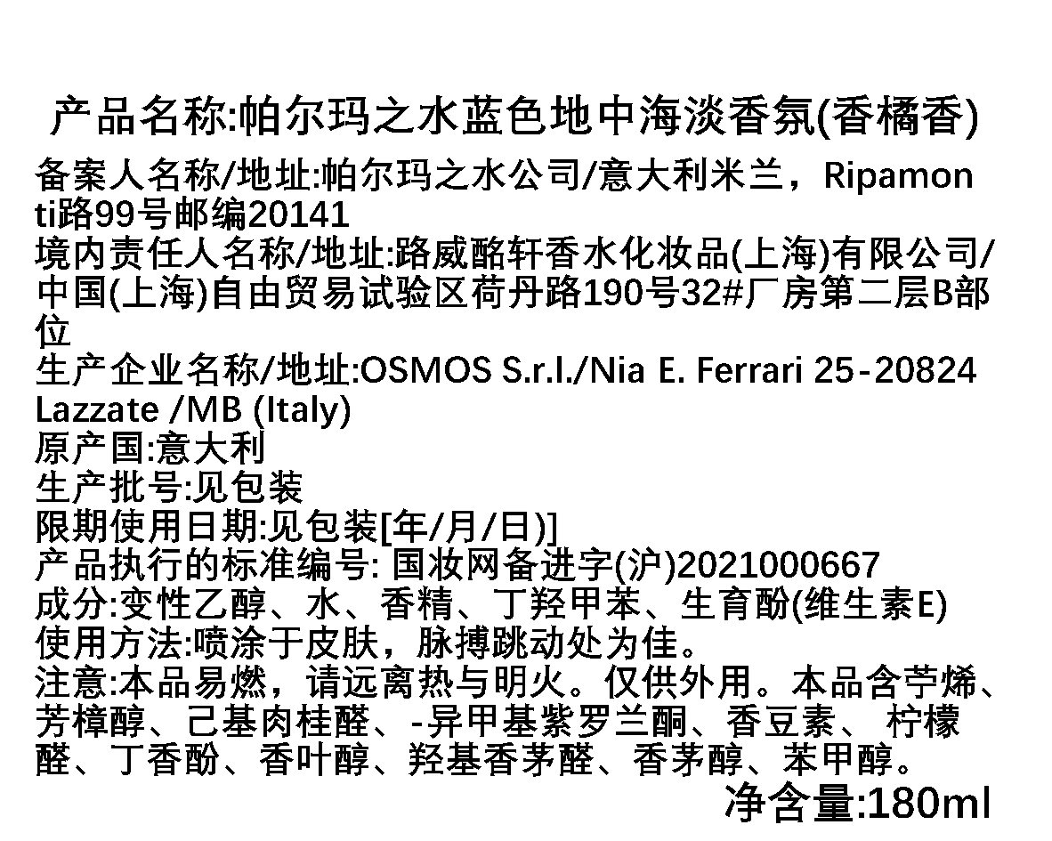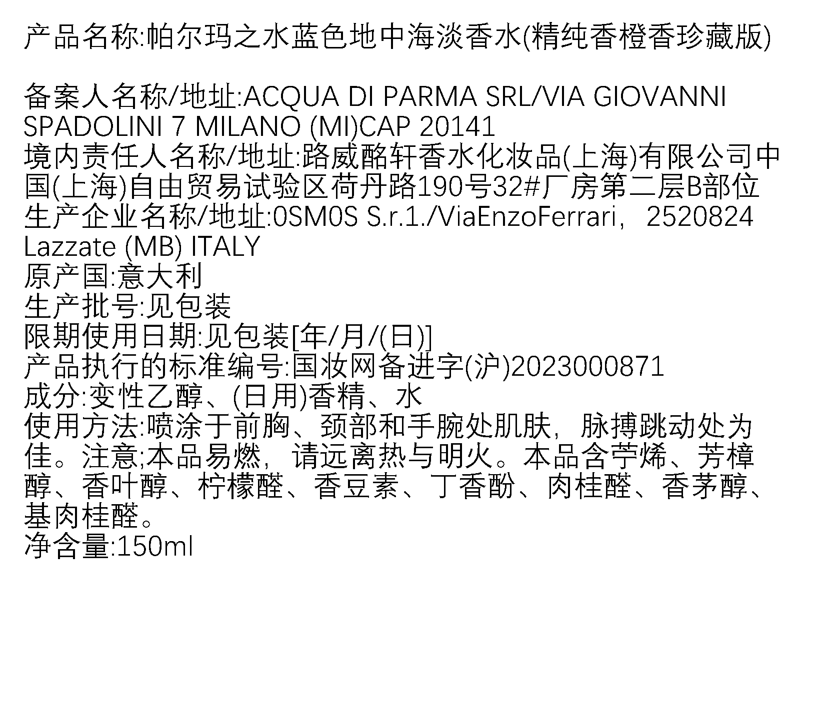 帕尔玛之水 蓝色地中海系列卡普里岛香橙香水