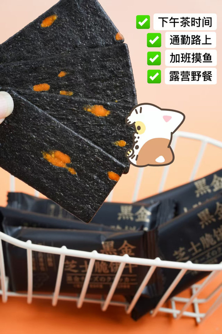 【黑金芝士薄脆饼干】💰19.9❗️整整58包‼️咸甜酥脆,咔嚓脆👆✅八黑谷物≥5%+奇亚籽+芝士粉🧀浓郁奶香+谷物清香层层