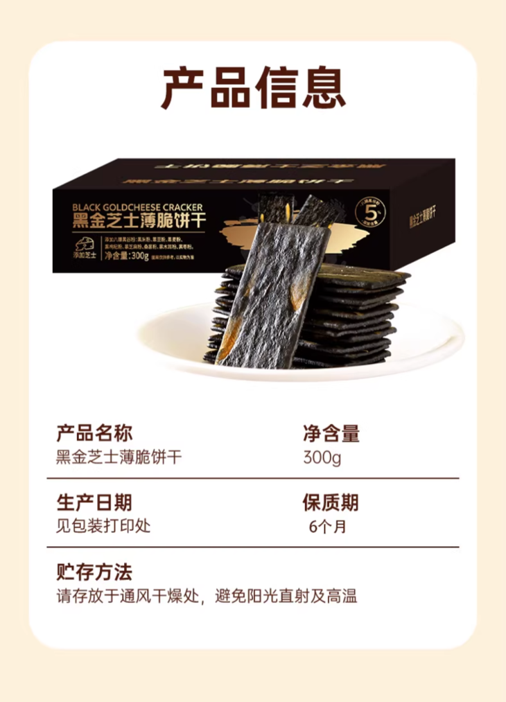 【品名】黑金芝士薄脆饼干