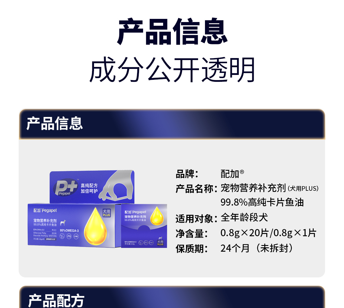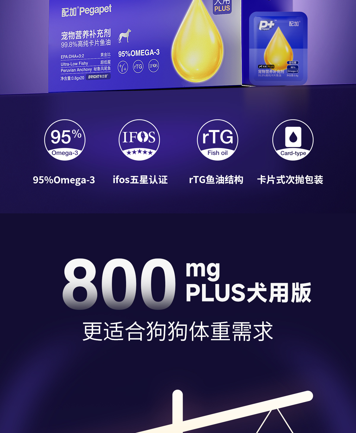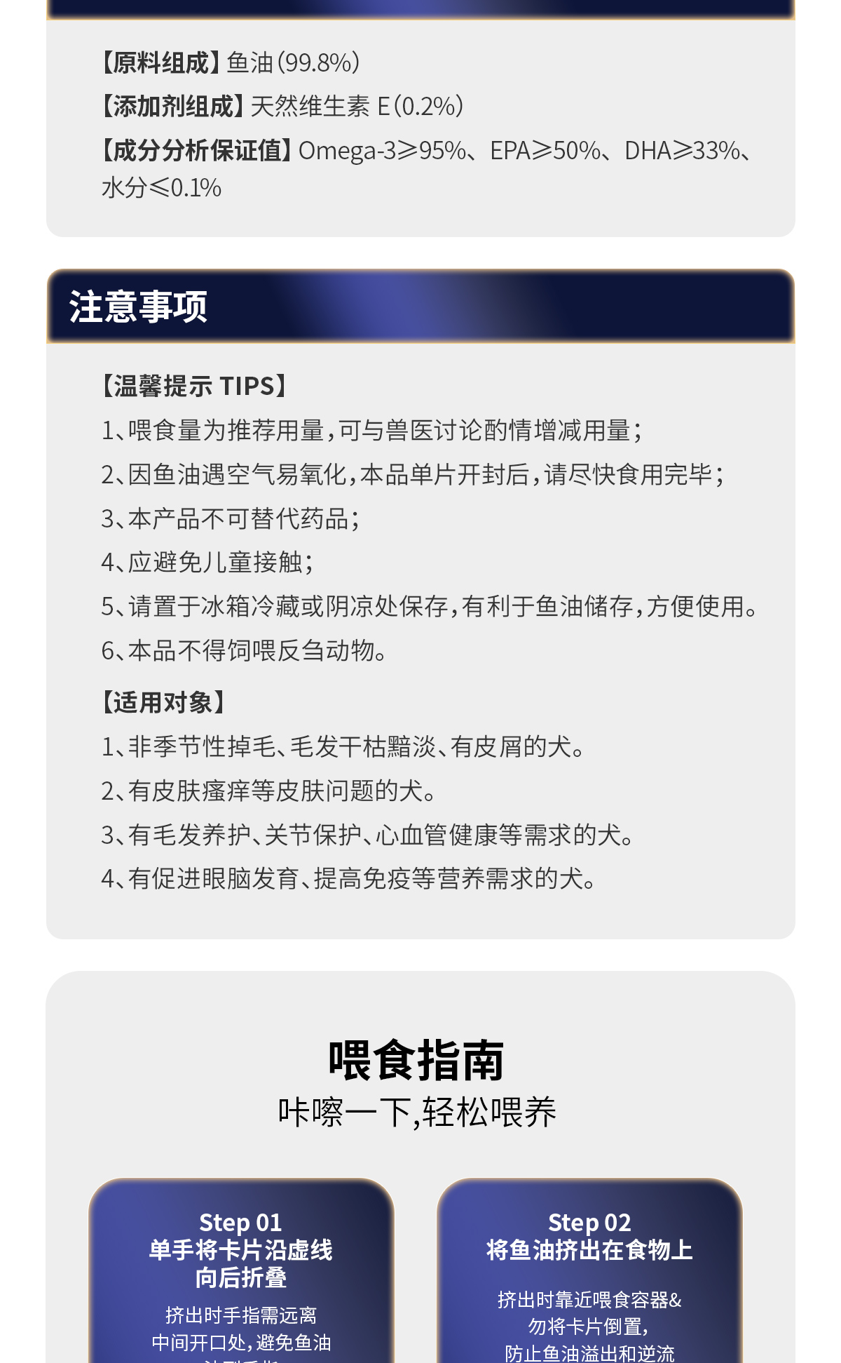 布兰德1号高纯卡片鱼油配加小金卡 omega3美毛 (犬用)