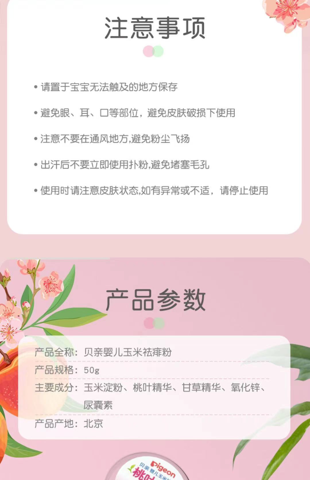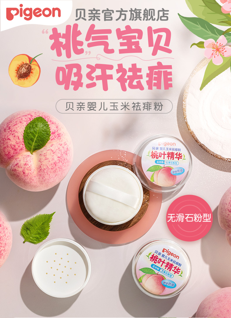 【官方自营】贝亲婴儿玉米祛痱粉桃叶精华爽身粉宝宝50g