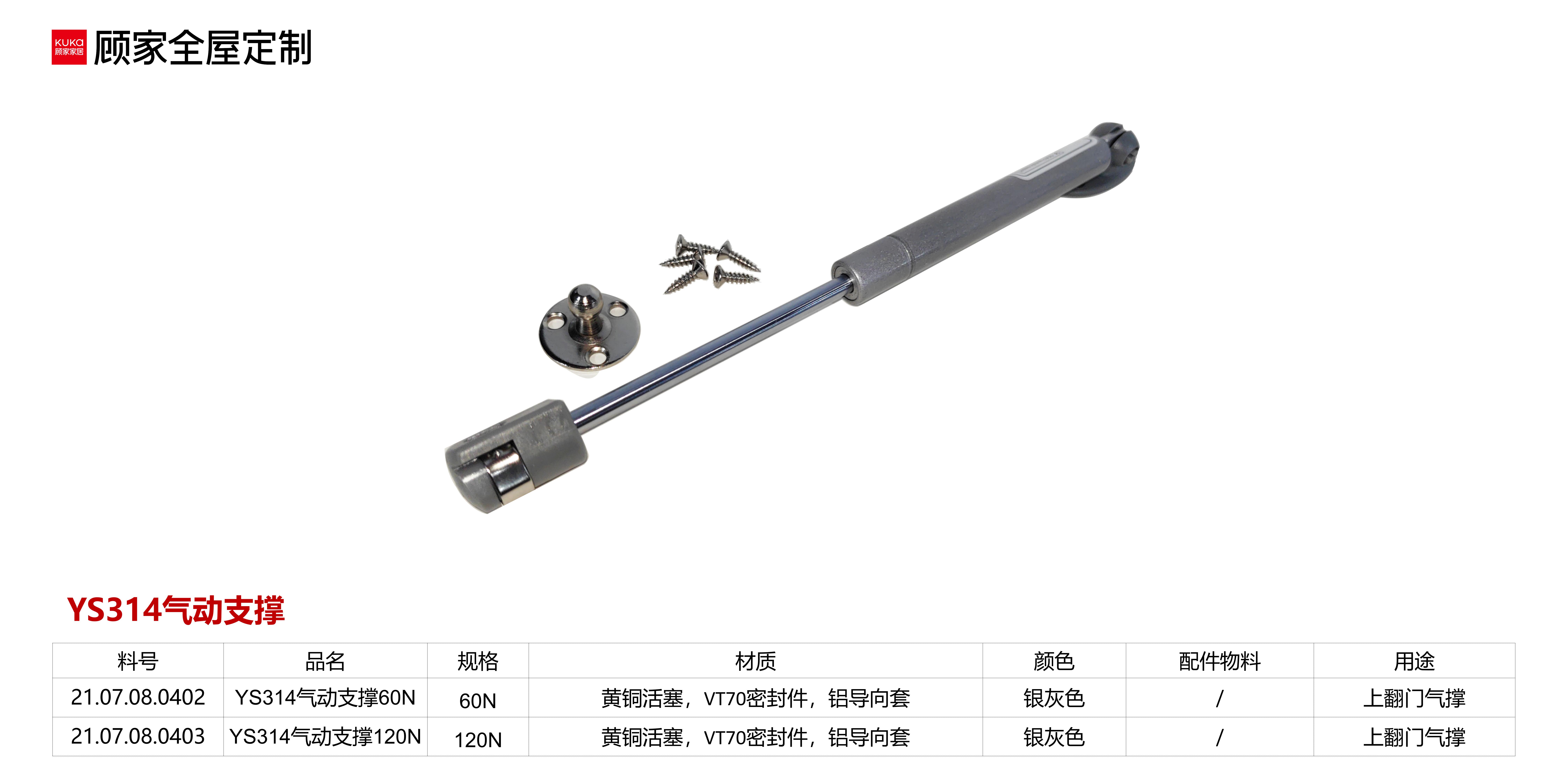 1-衣柜基础五金-4支撑类-7-YS314气动支撑60N
