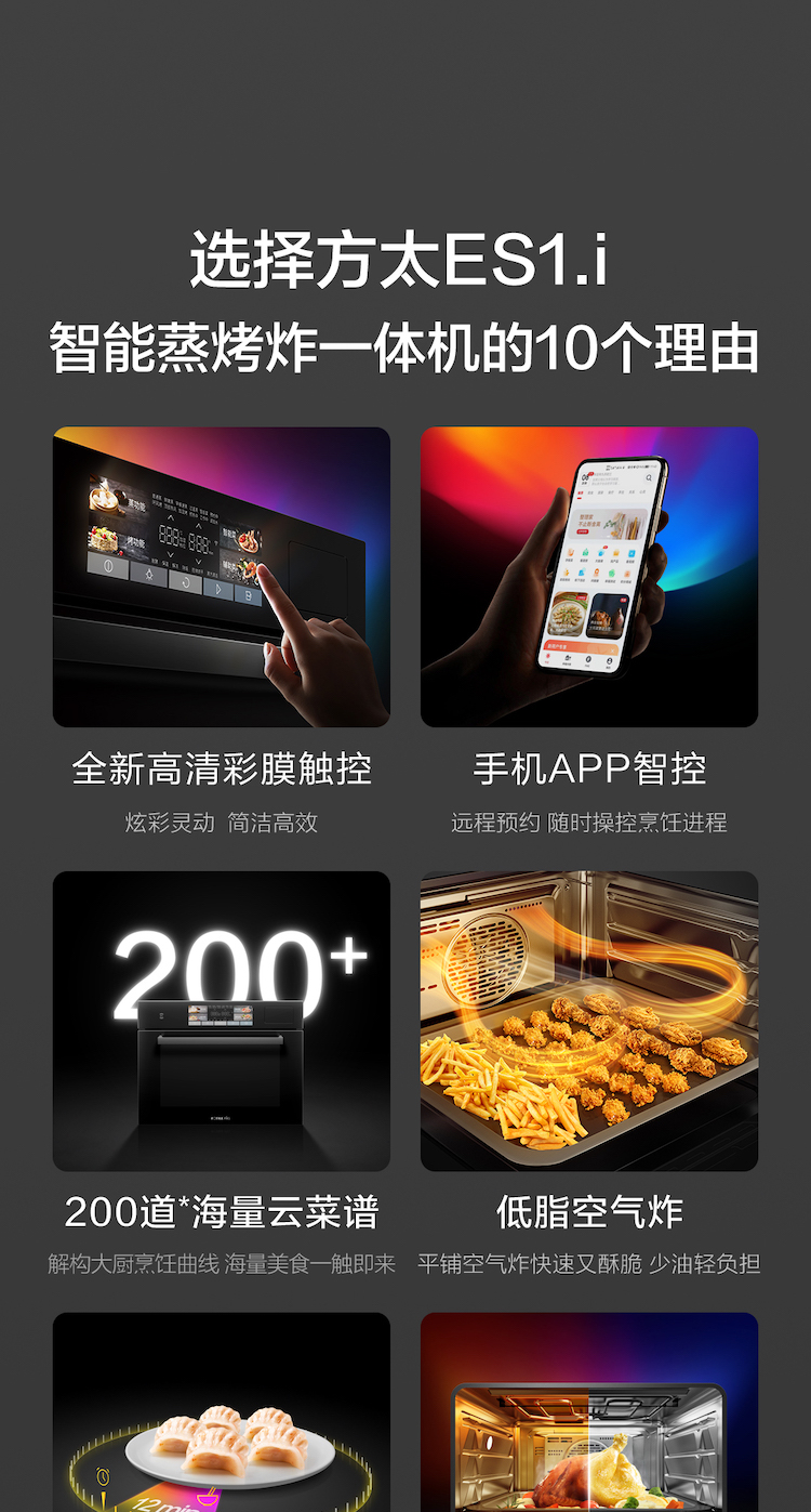方太蒸烤箱一体机嵌入式家用烘焙多功能WiFi互联智能彩屏蒸箱烤箱空气炸一体机3合一ZK-ES1.i