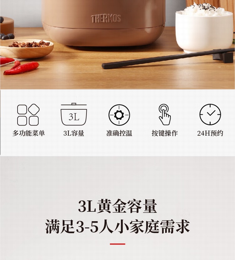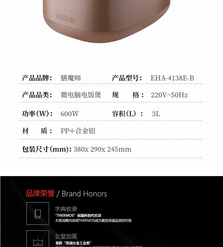 膳魔师EHA-4138E-B智能微电脑电饭锅3L棕色