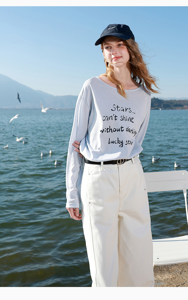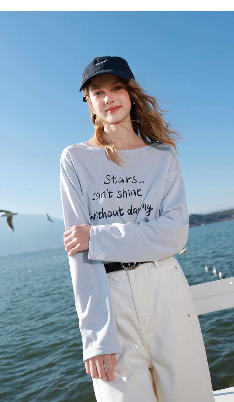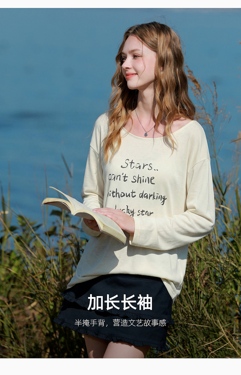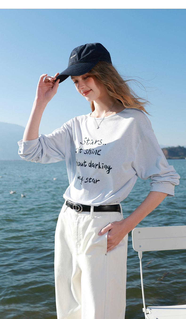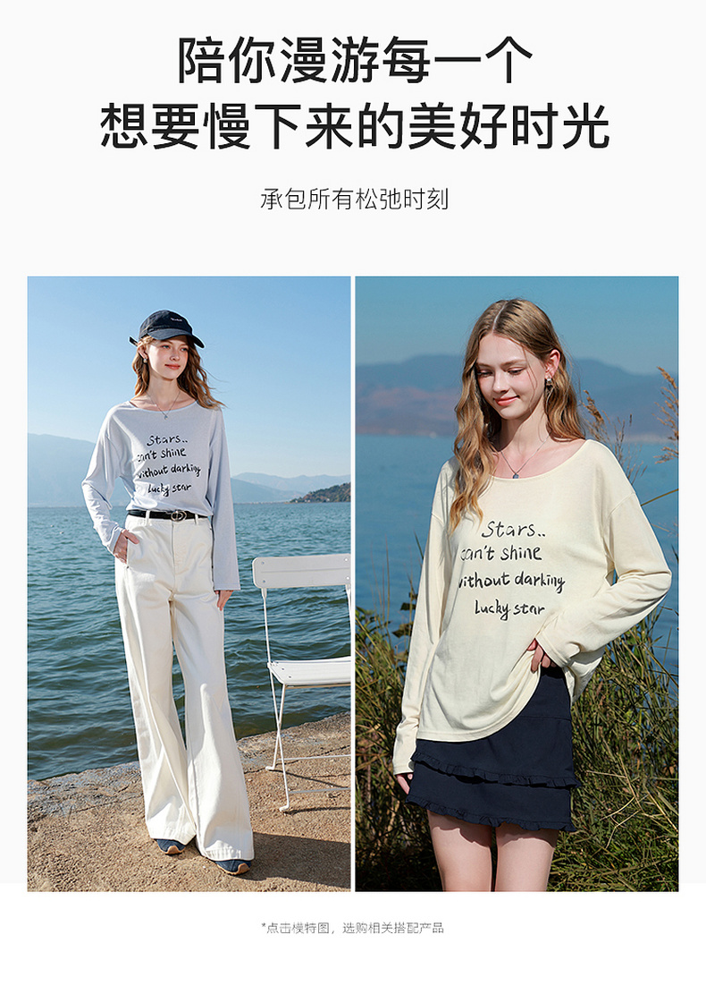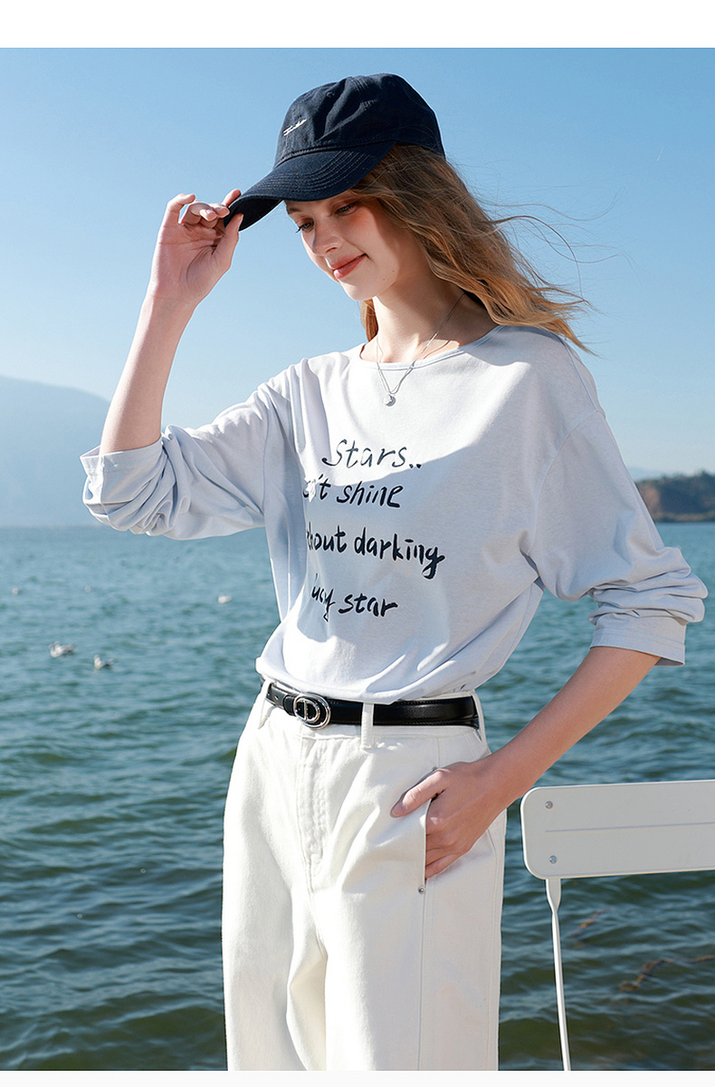 【莱赛尔】三彩2026春季新款慵懒休闲宽松字母T恤套头衫长袖M