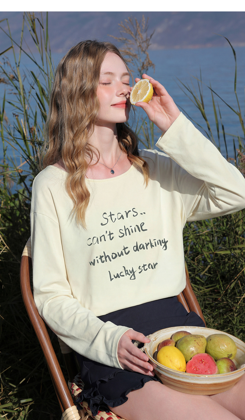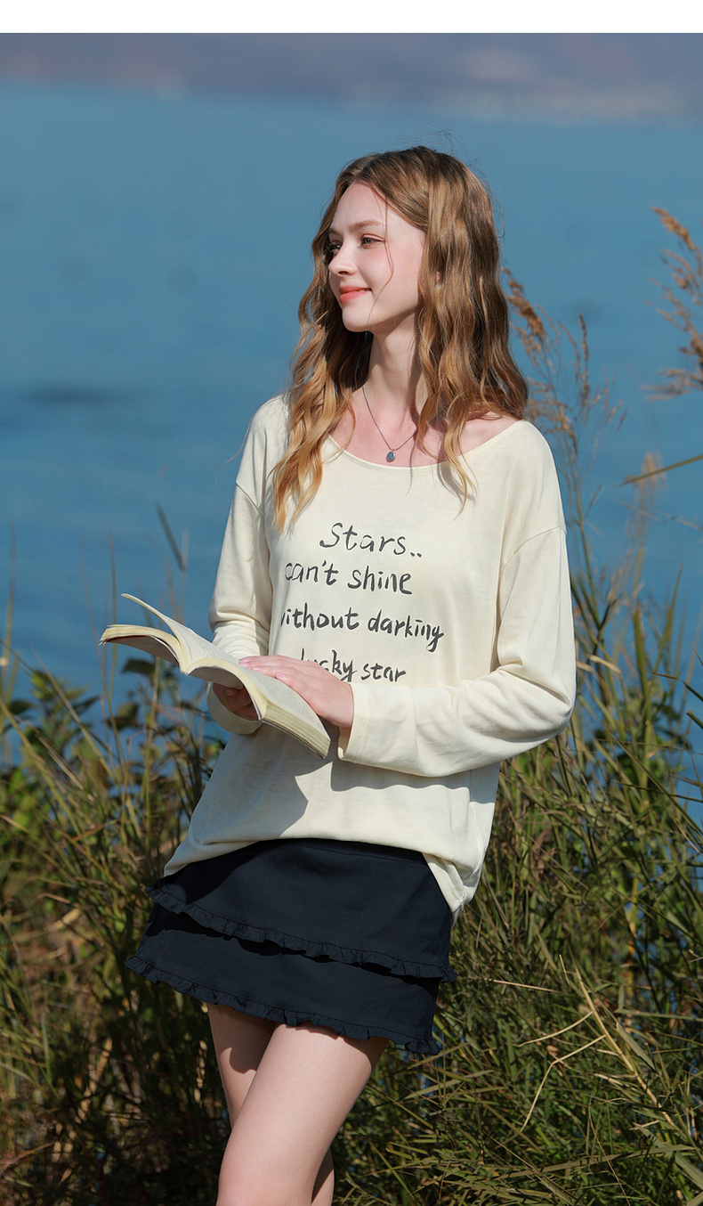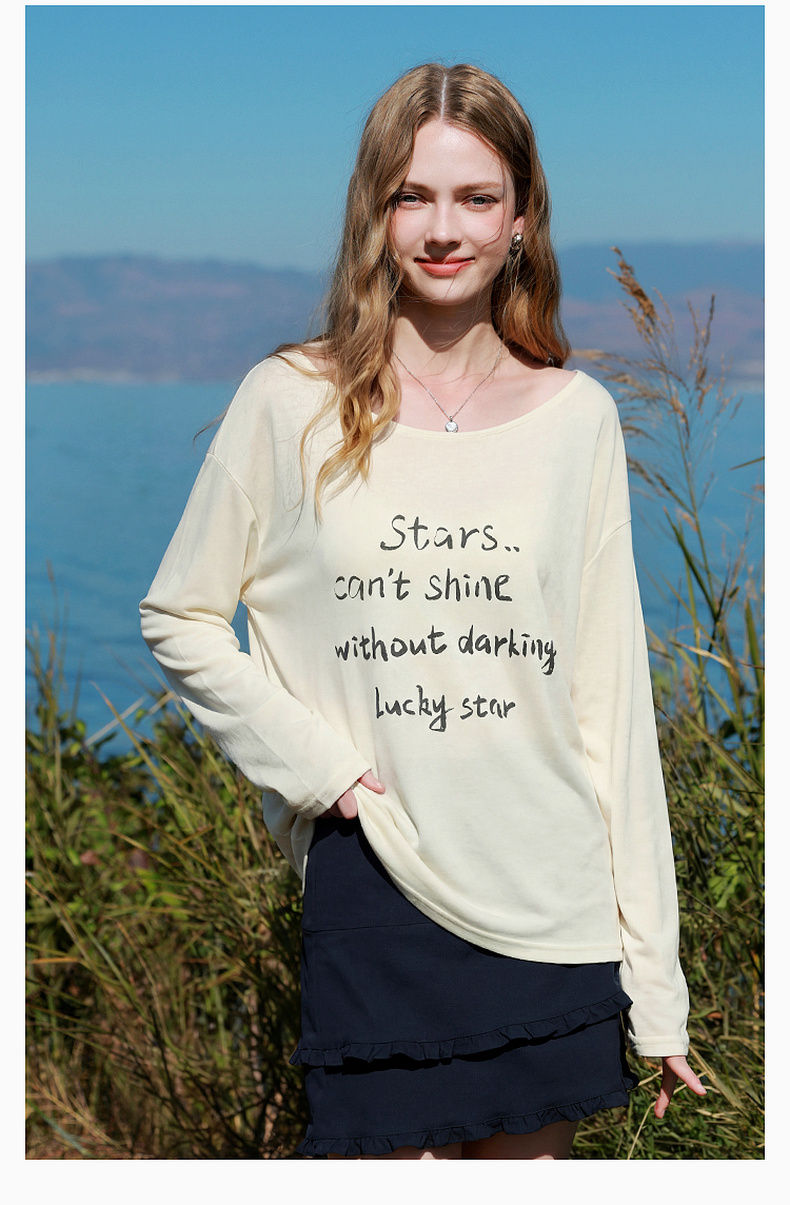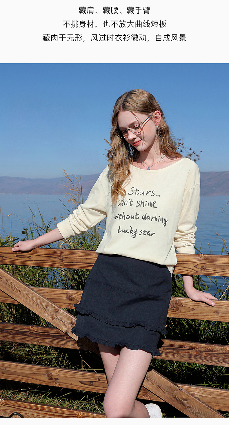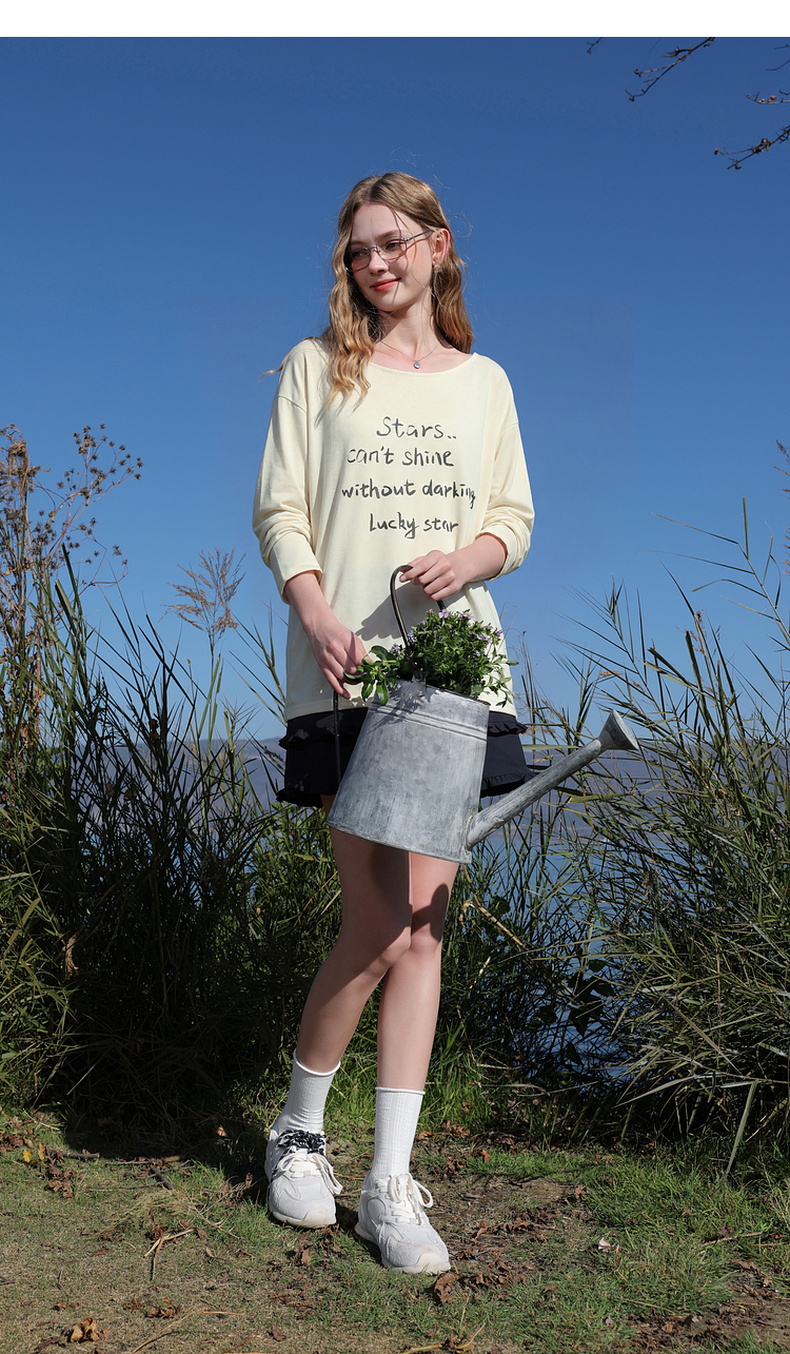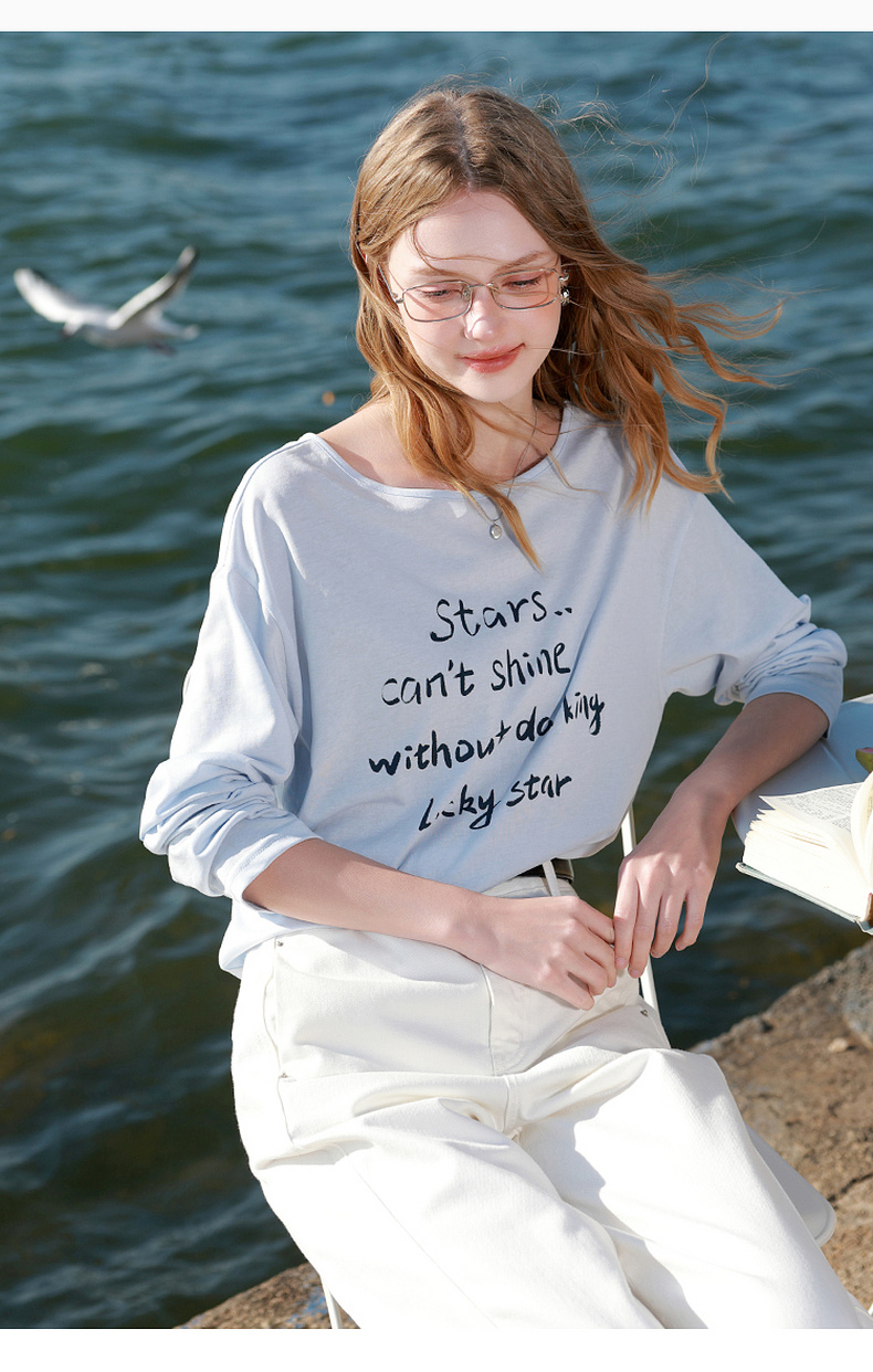 【莱赛尔】三彩2026春季新款慵懒休闲宽松字母T恤套头衫长袖M