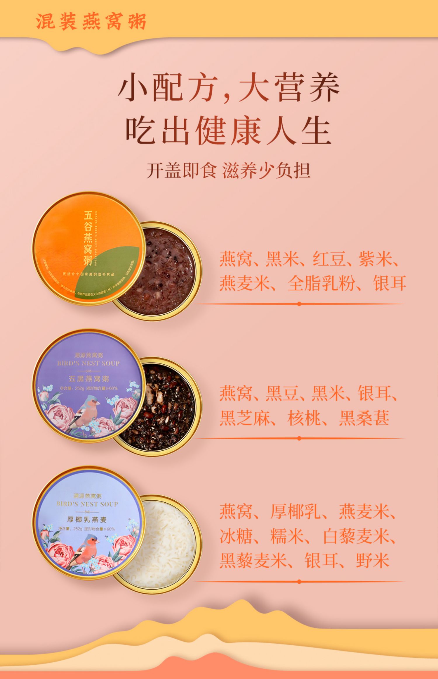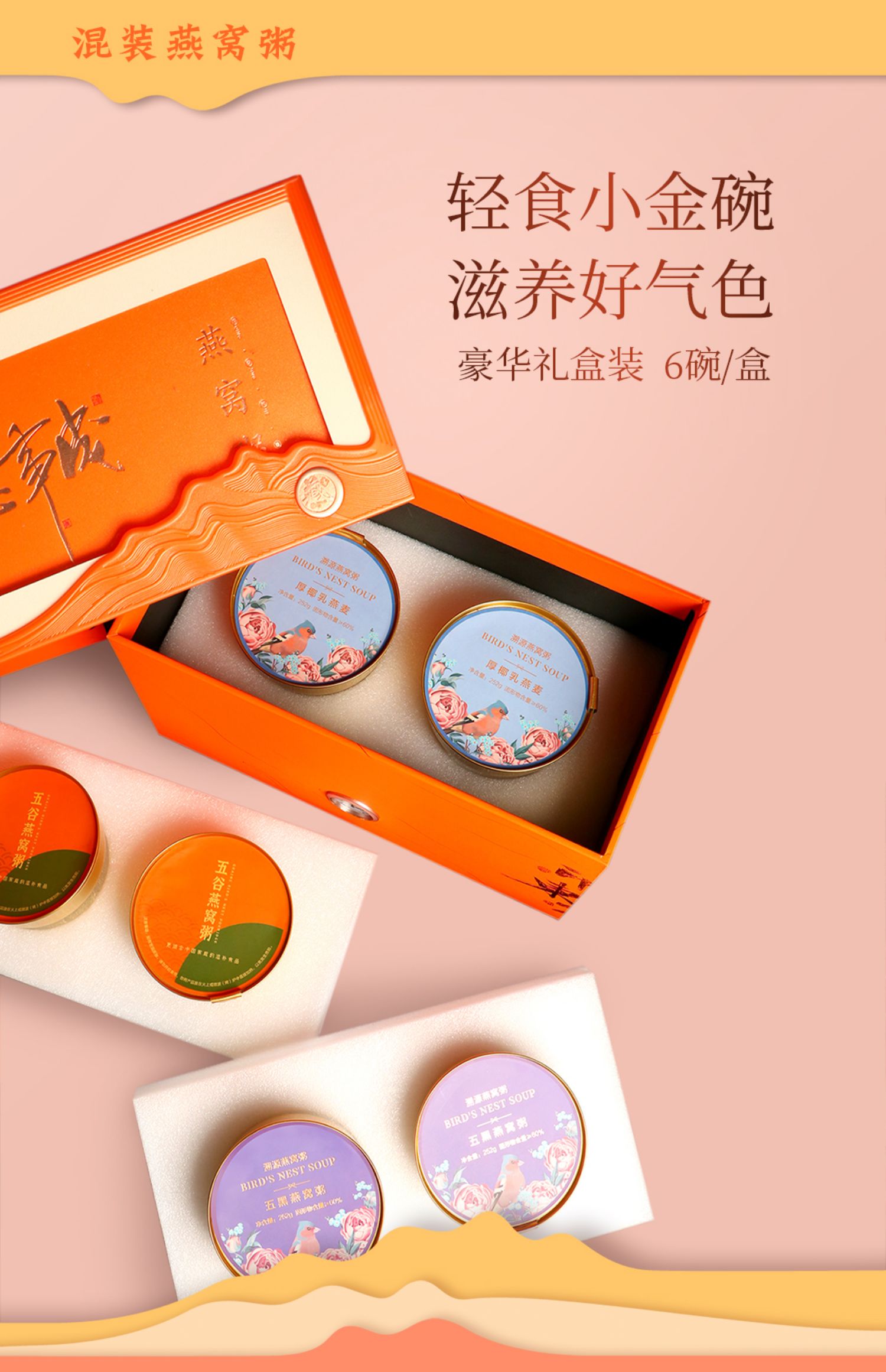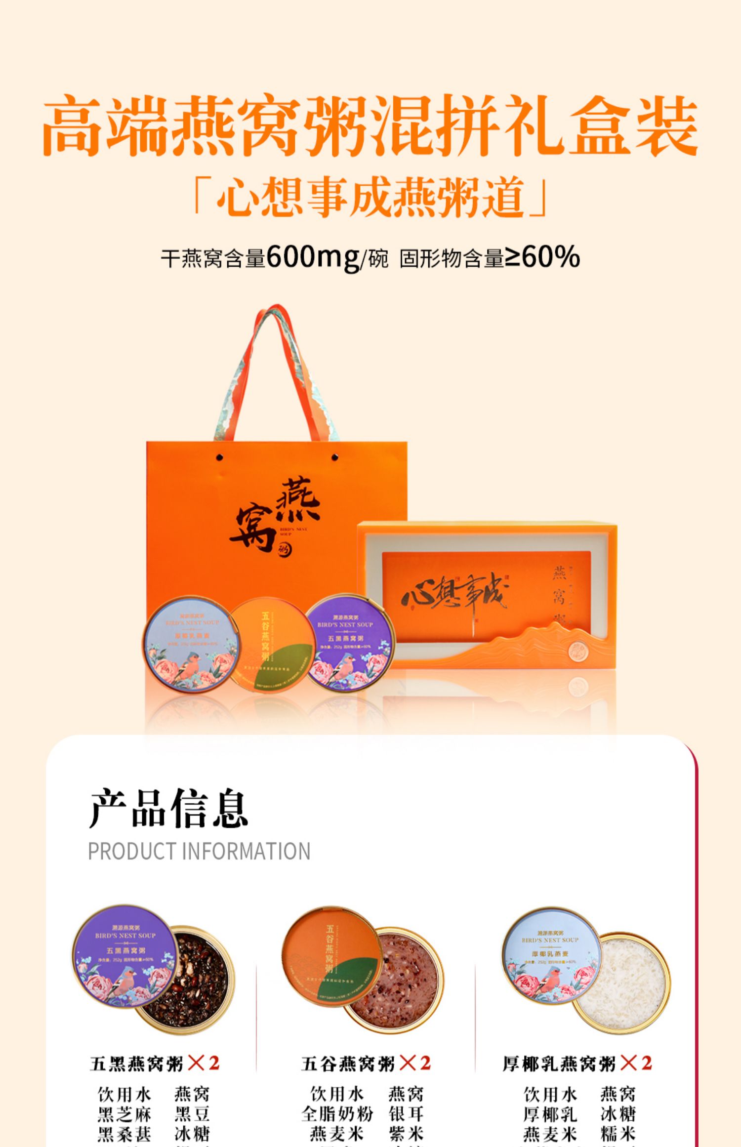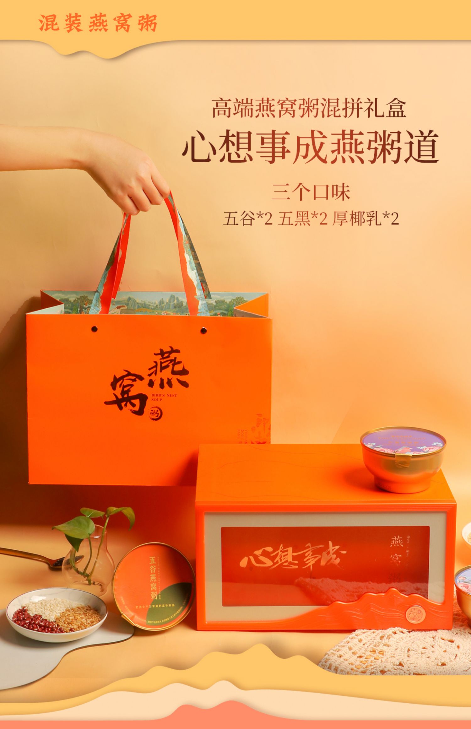 高端燕窝粥五谷厚椰乳五黑燕麦牛奶0添加福利商务见父母师长礼盒 【心想事成】燕窝粥六碗(三种口味)礼盒装