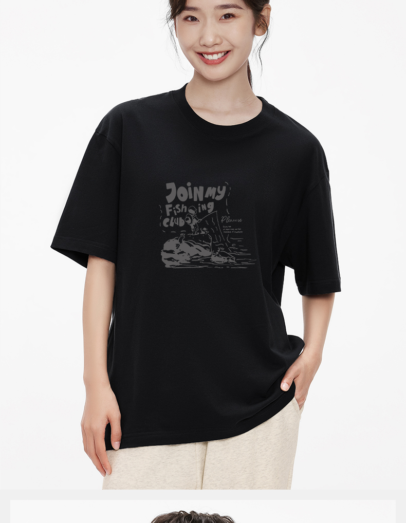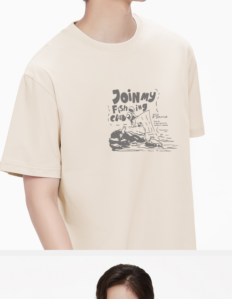 「棉的美学」时尚新款简约男T恤夏季印花透气短袖宽松百搭上衣