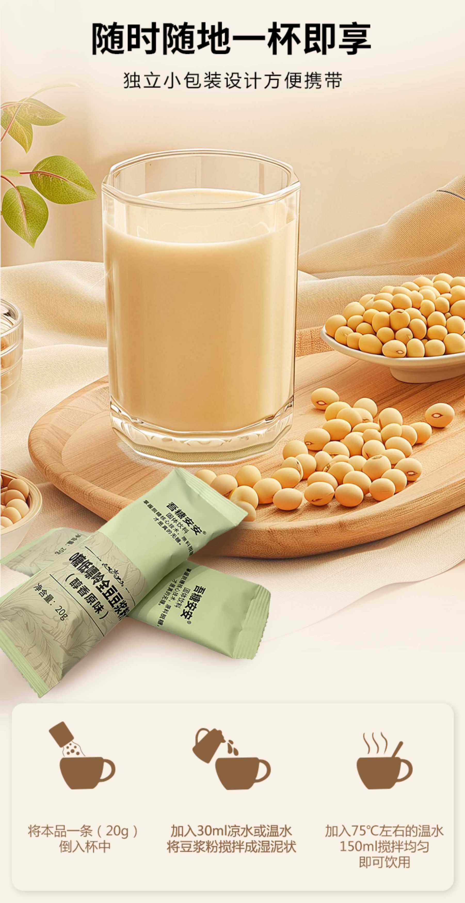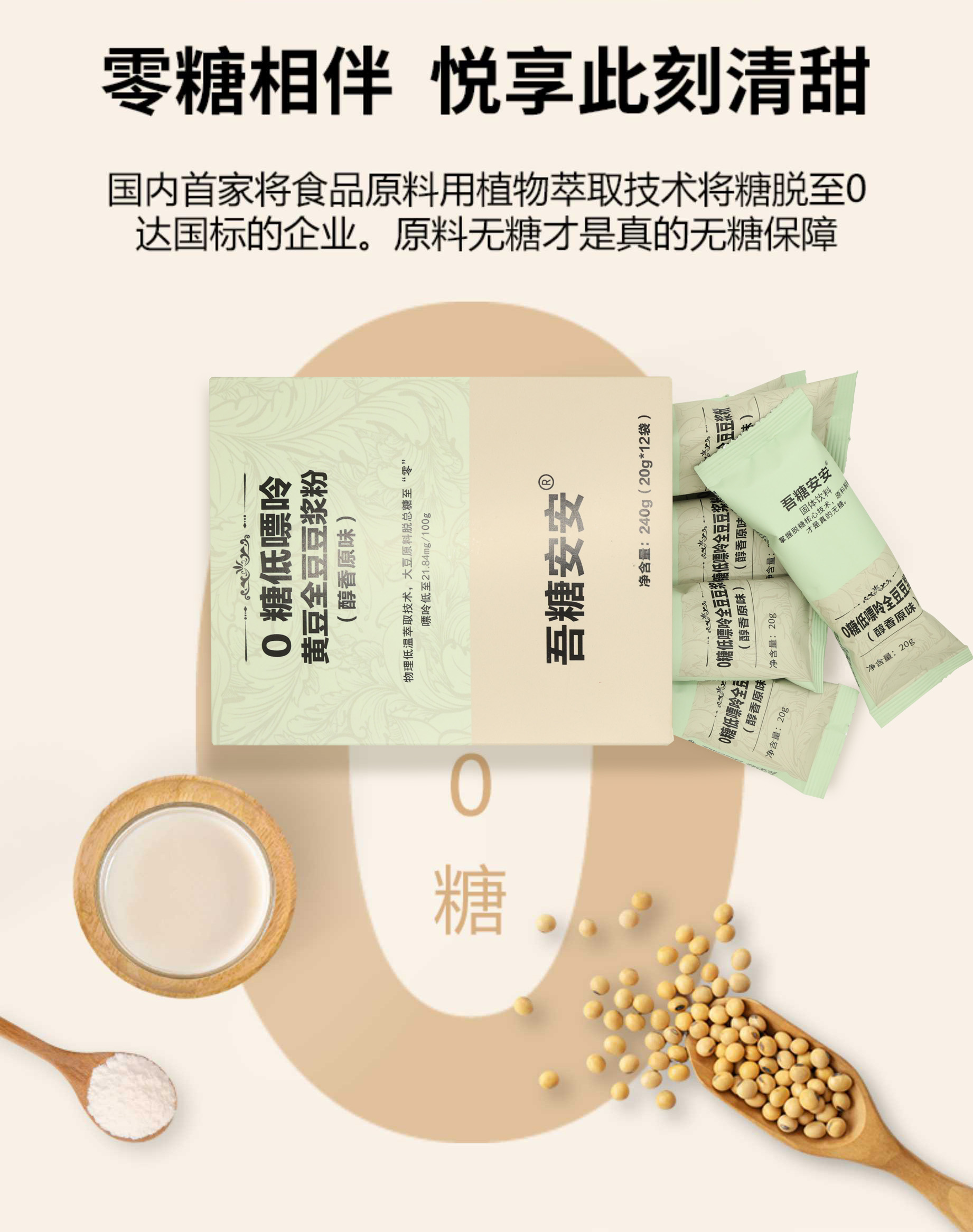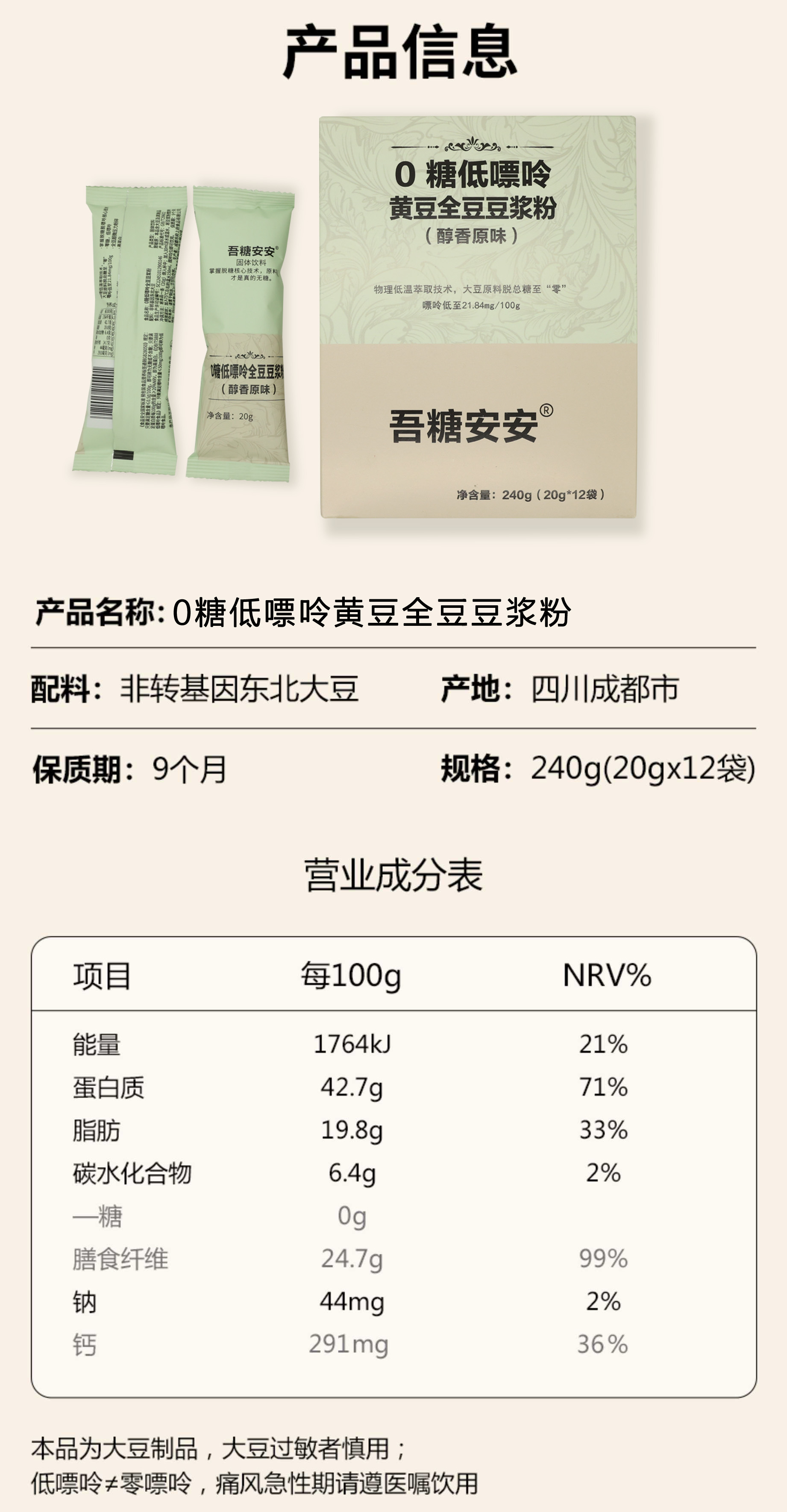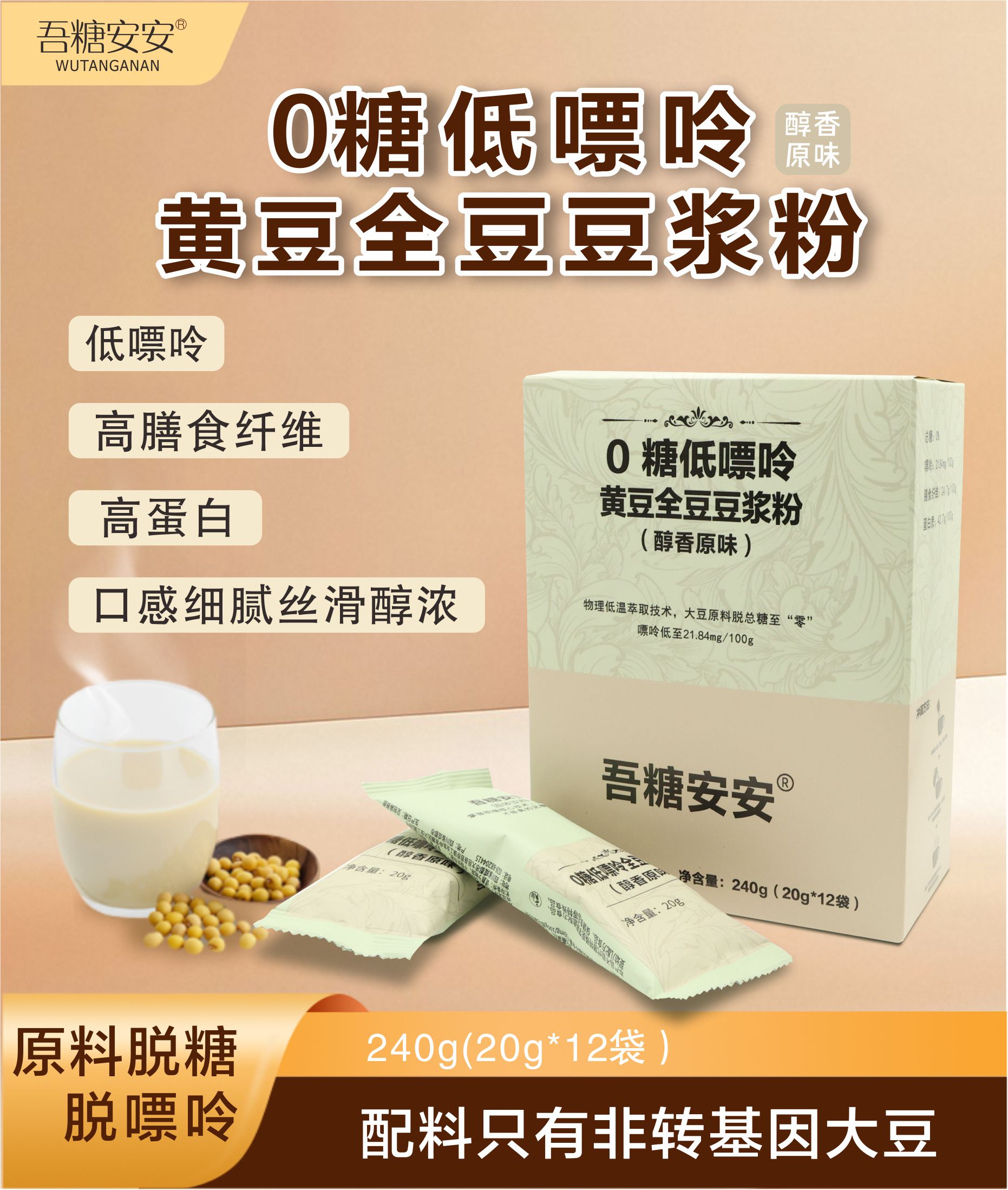 【醇香原味黄豆纯享】吾糖安安 0糖低嘌呤黄豆全豆豆浆粉 20g*12袋/盒