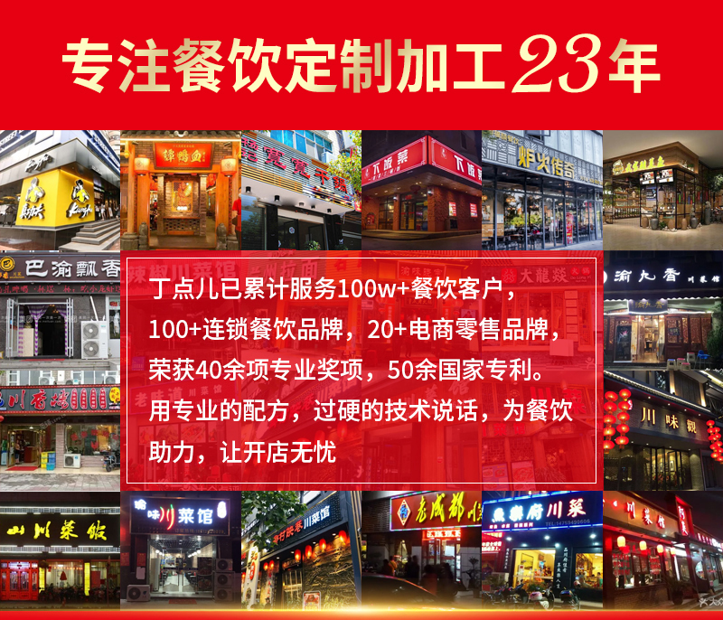 四川丁点儿食品开发股份有限公司,是集川菜调味料研发、生产、销售、服务为一体的现代化企业,专注为餐饮客户提供川菜调味解决方案。公司成立至今,服务了超百万家的餐饮门店以及连锁品牌。