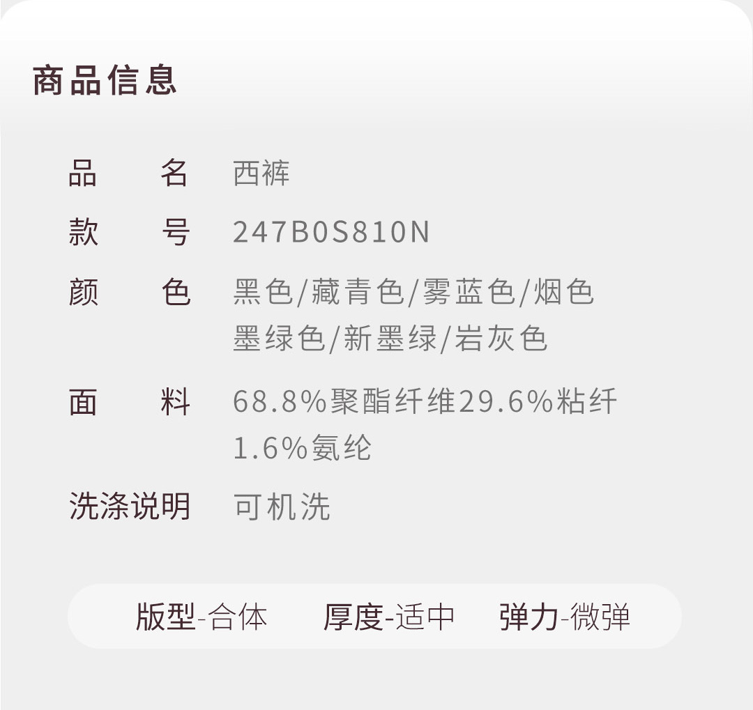 【总裁T3】易打理免皮带套西西裤247B0S810N