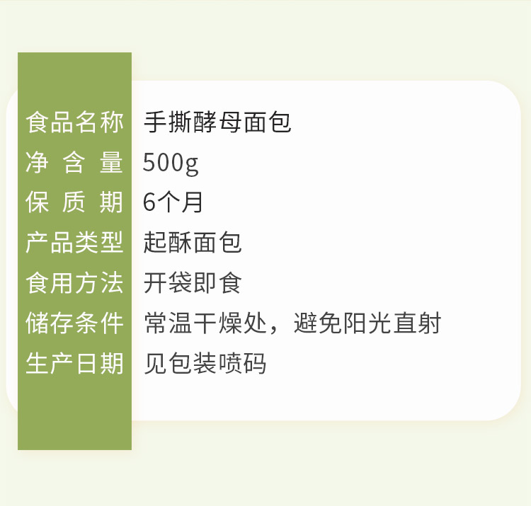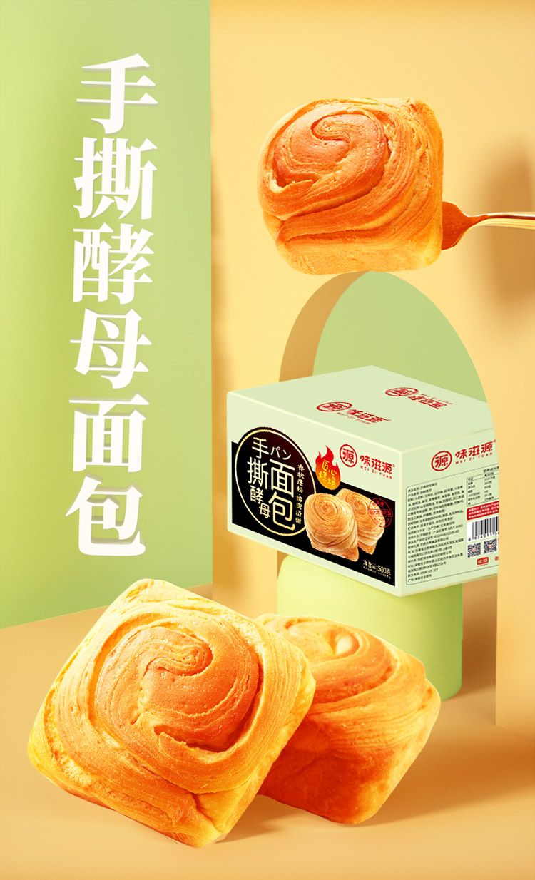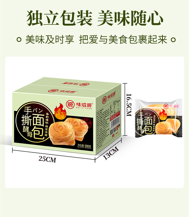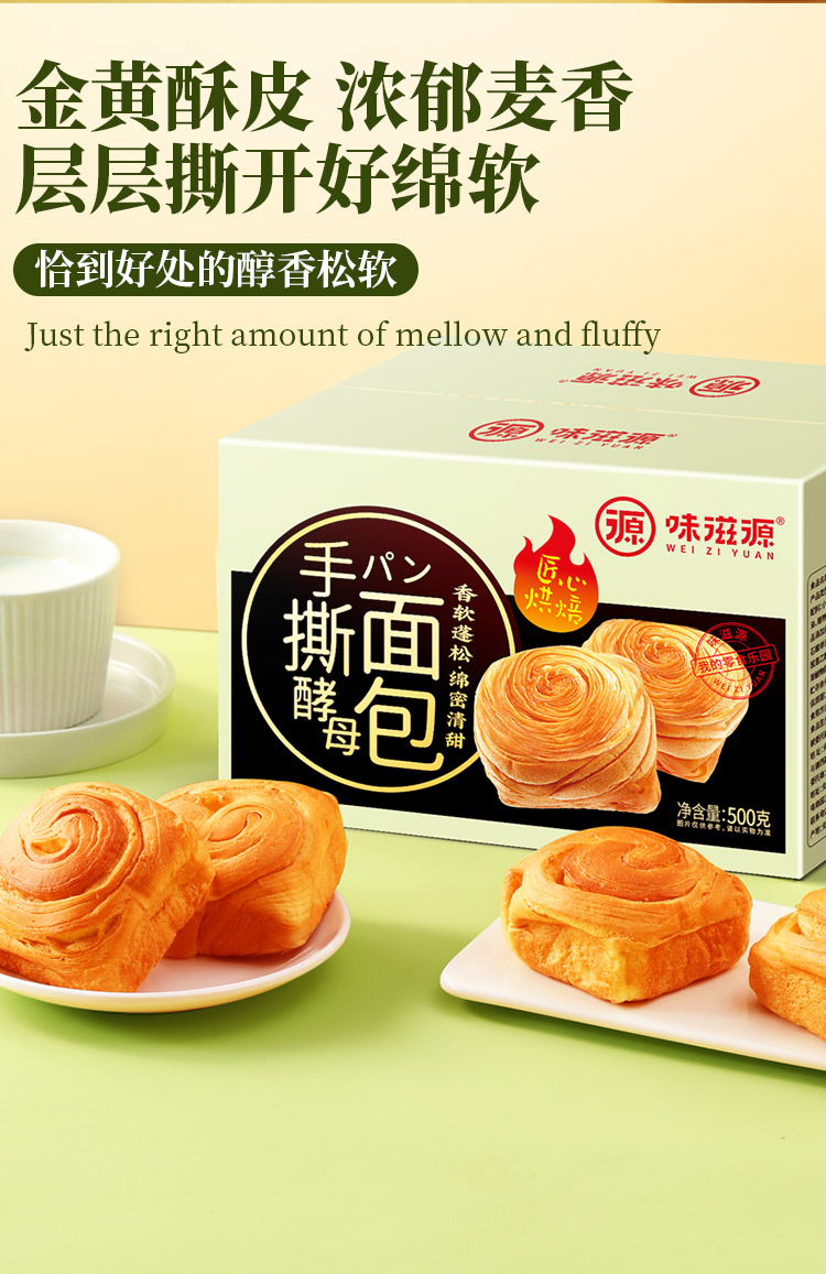 【味滋源】手撕酵母面包整箱500g 早餐糕点营养蛋糕 健康零食小吃货休闲食品即食