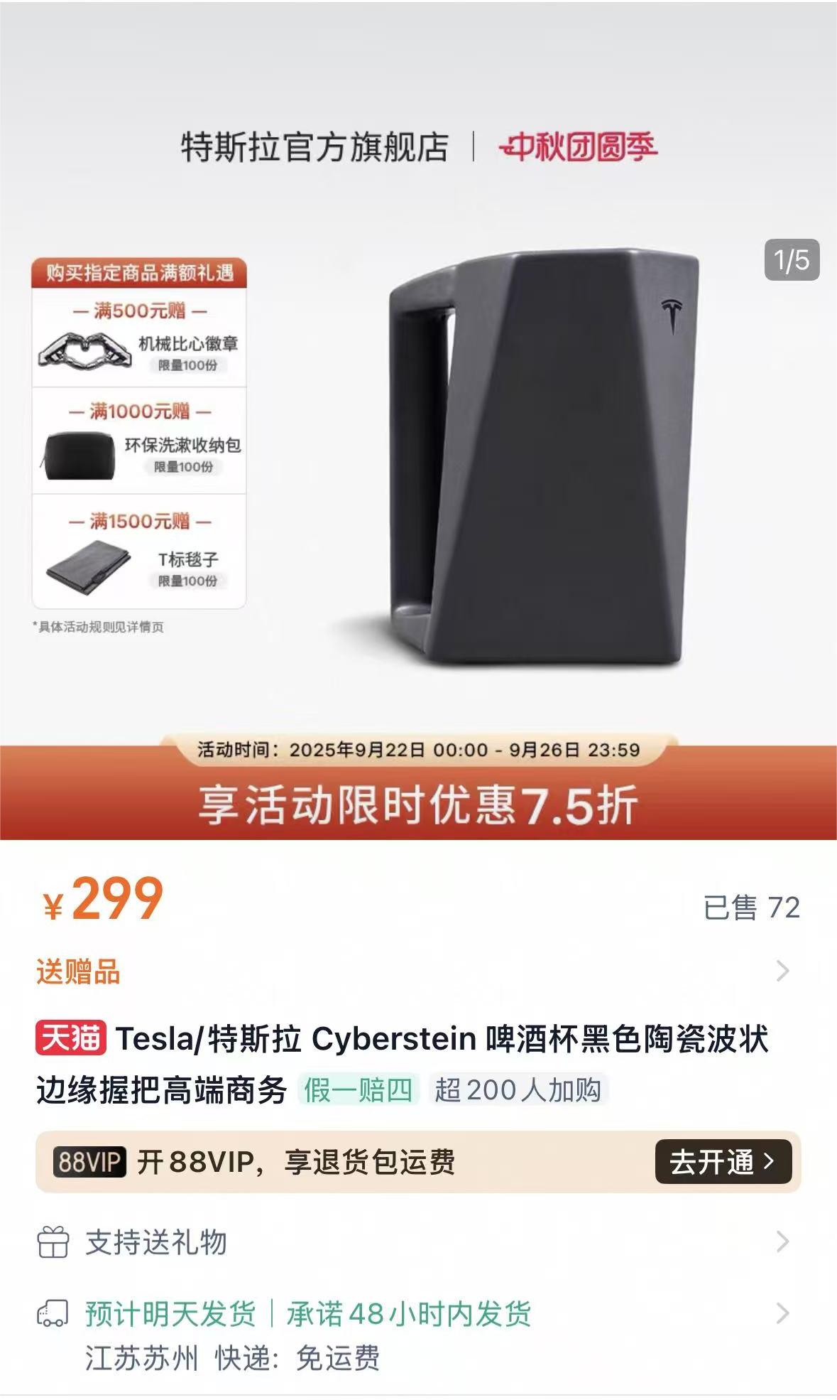 特斯拉周四在其在线商店上架了两款新产品:限量版 CyberBeer + CyberStein 套装和 CyberOpener。遗憾的是,由于酒精饮料跨境运输限制,该套装仅在美国有售。