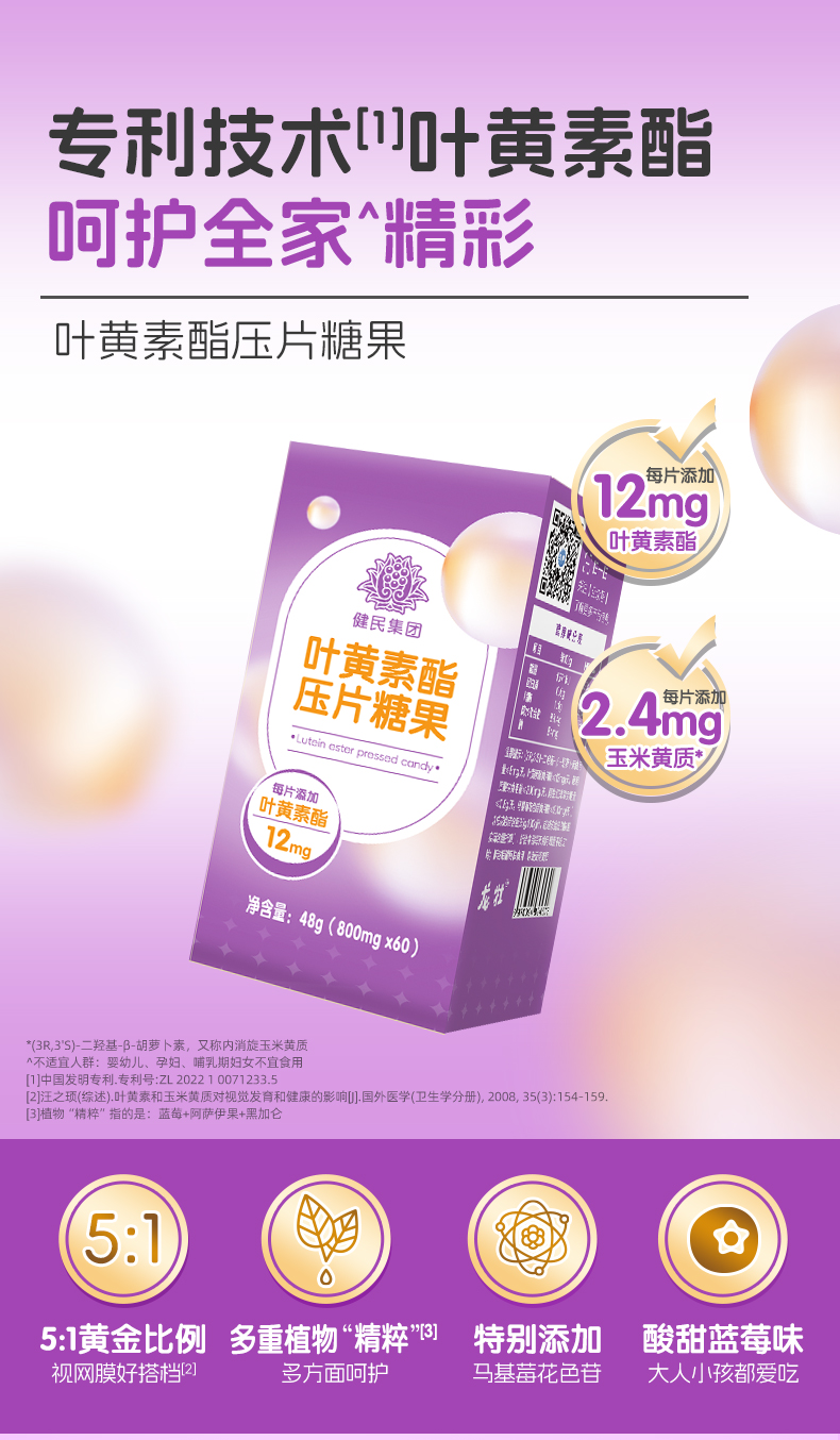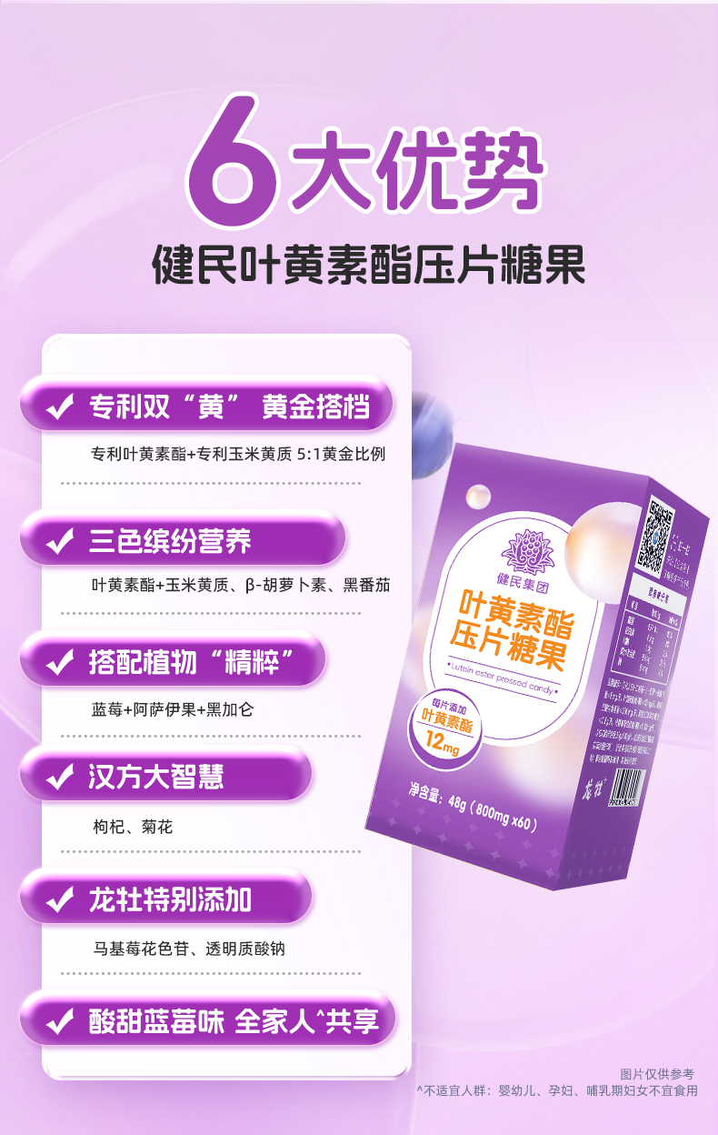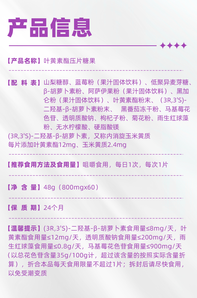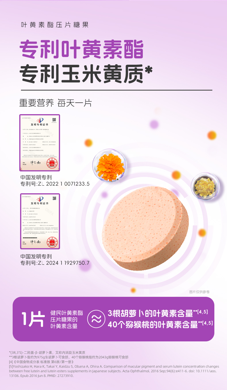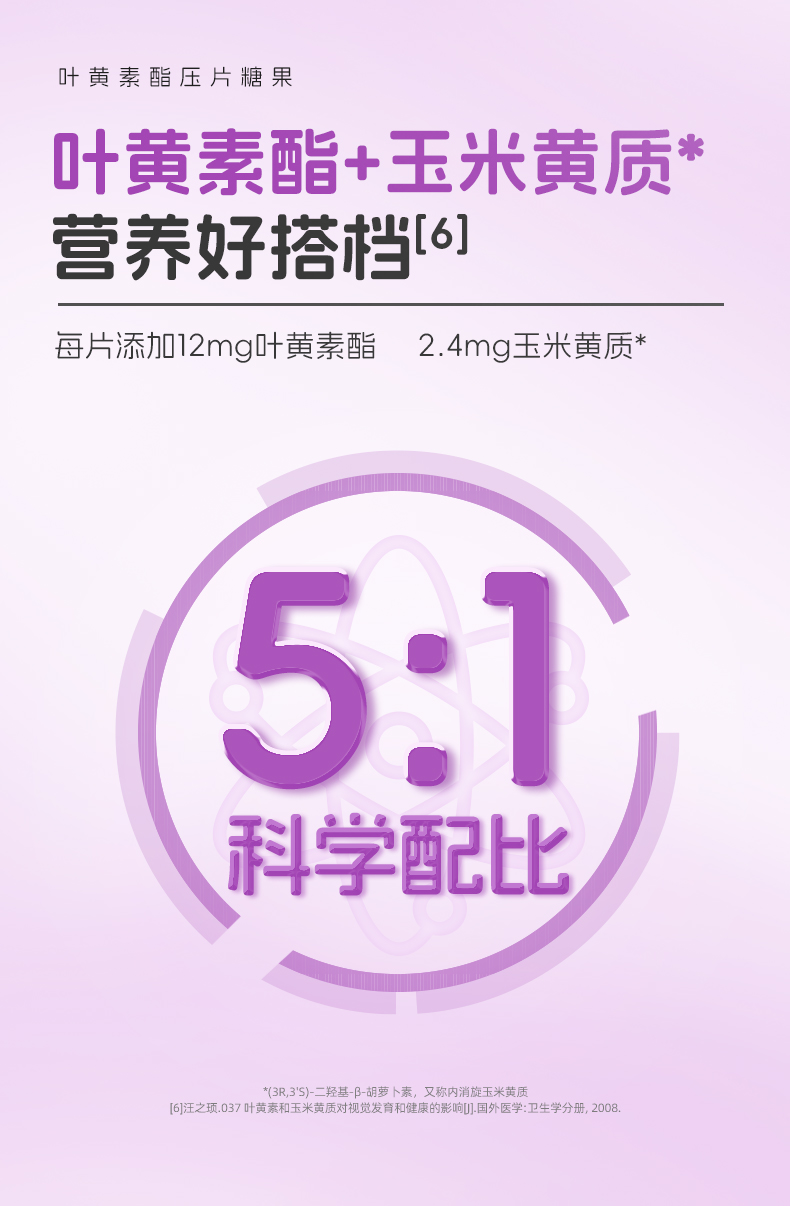 龙牡叶黄素酯压片糖果,儿童成人添加玉米黄质三色缤纷营养 儿童 成年人 老年人皆可 官方正品旗舰店