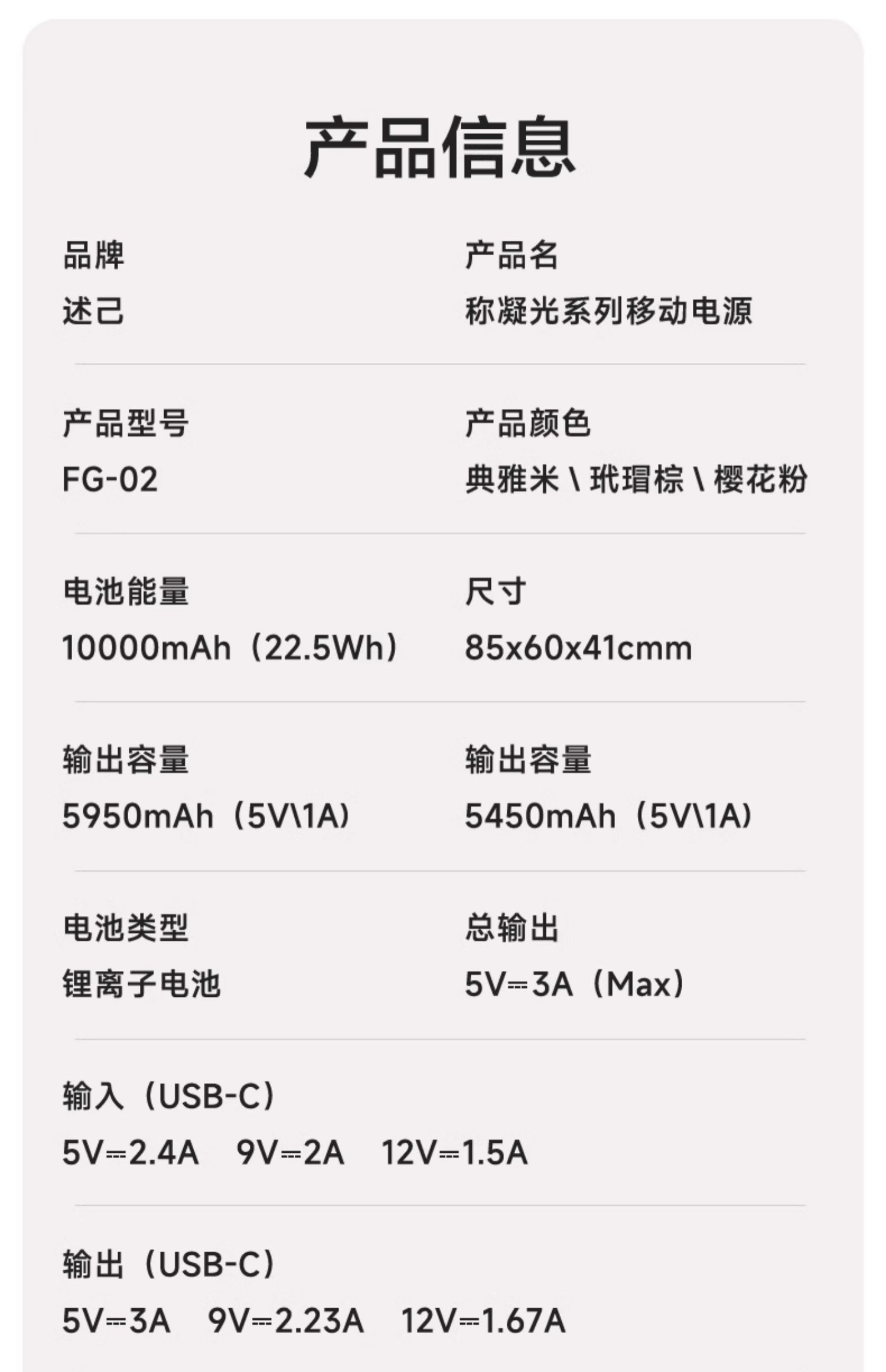 【品名】述己凝光系列移动电源(小相机款)