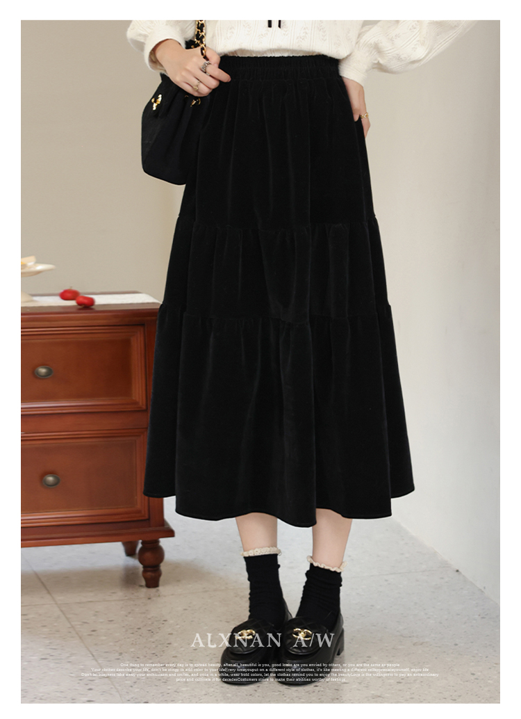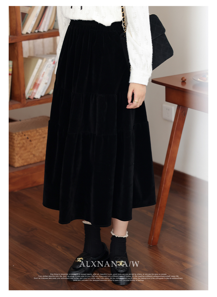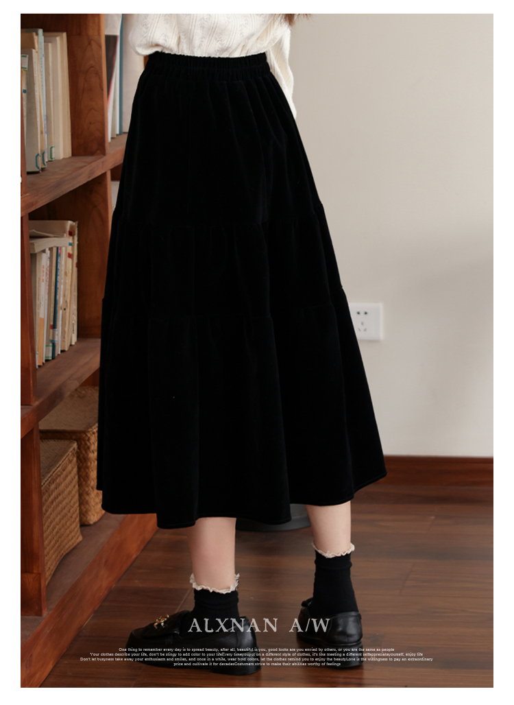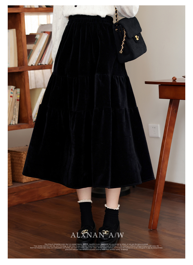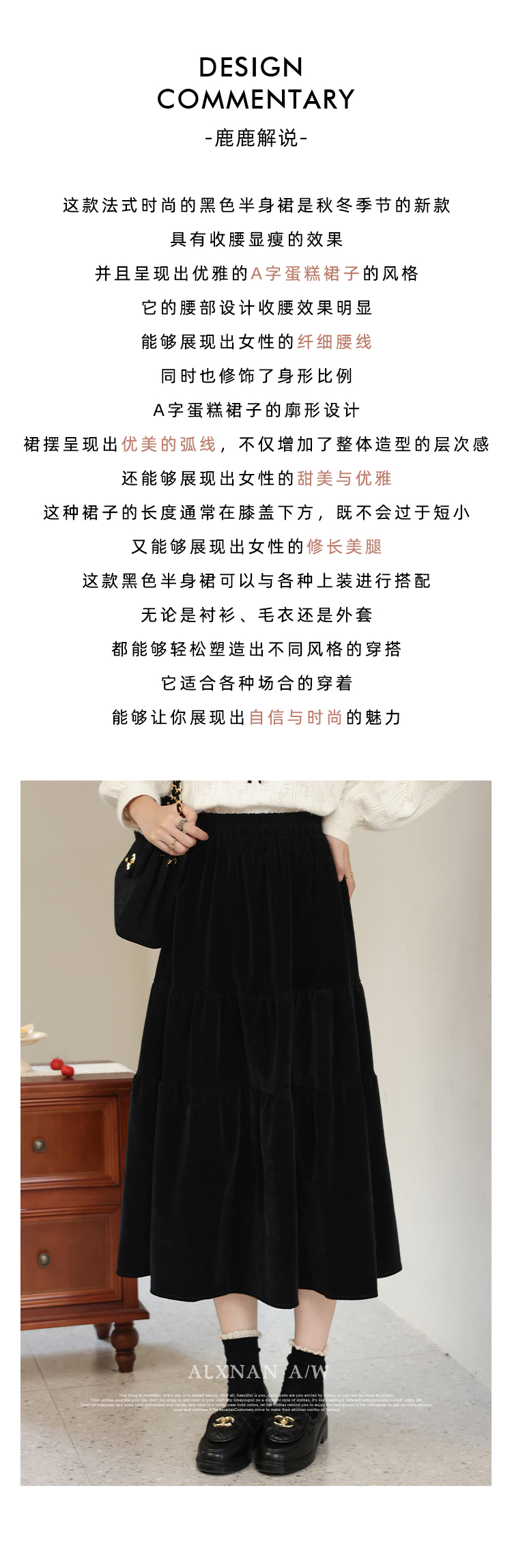 鹿向南《黑曜石》丝绒半身裙女秋冬新款法式收腰显瘦a字蛋糕裙子