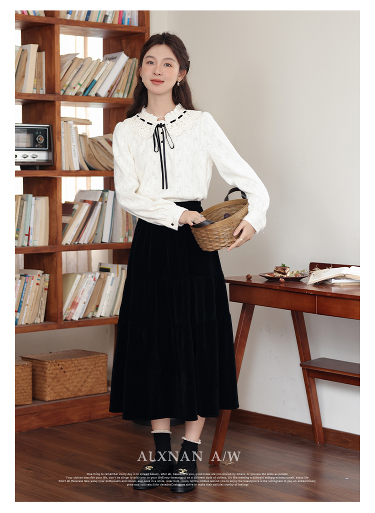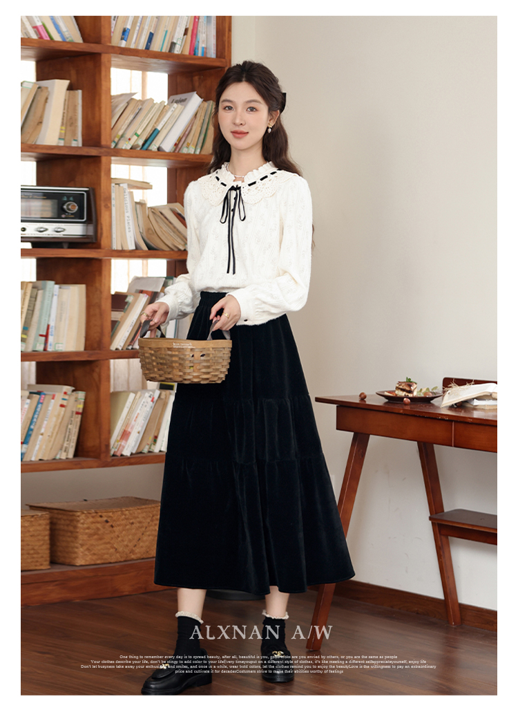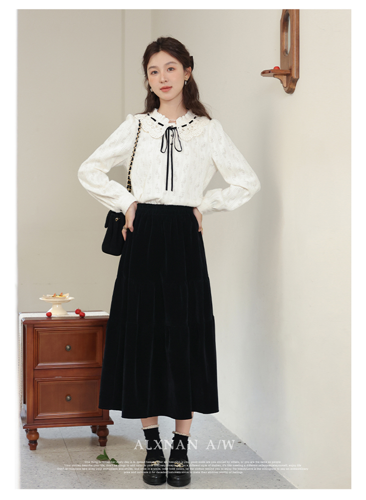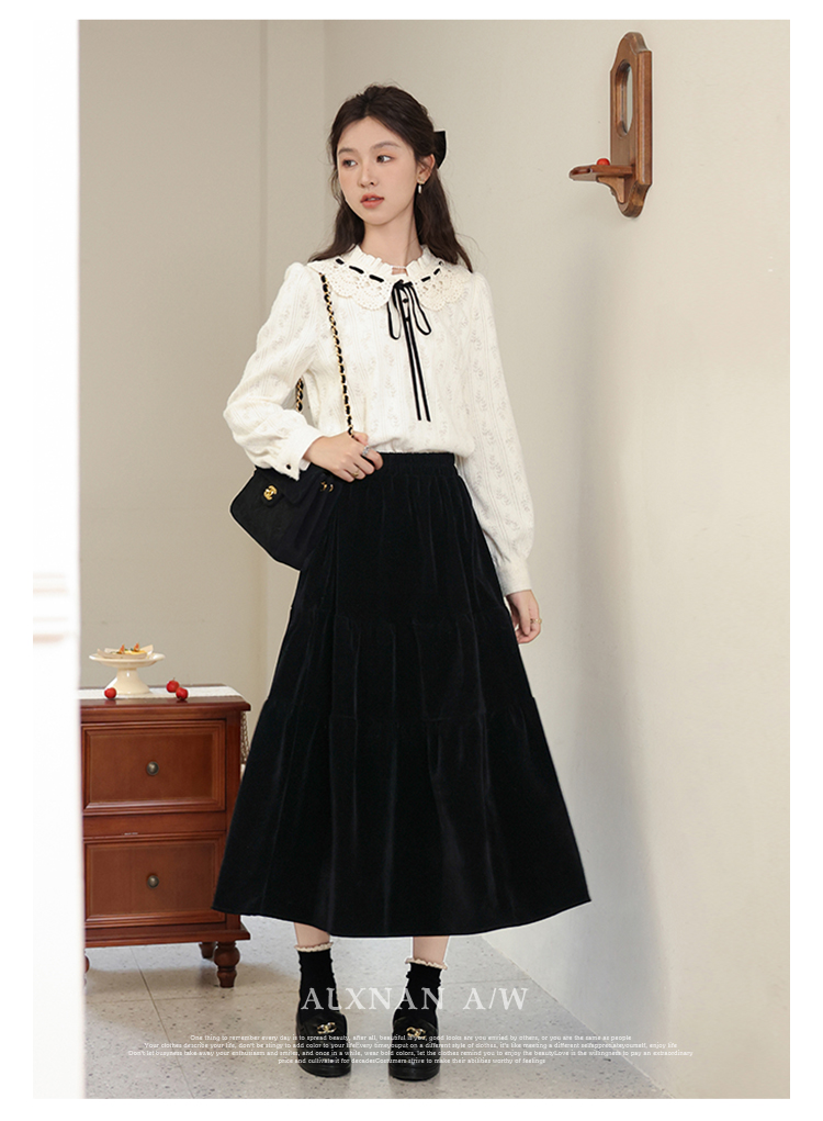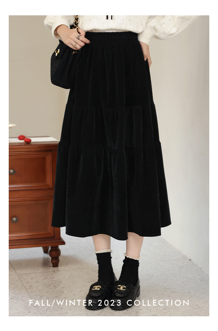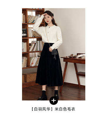 鹿向南《黑曜石》丝绒半身裙女秋冬新款法式收腰显瘦a字蛋糕裙子