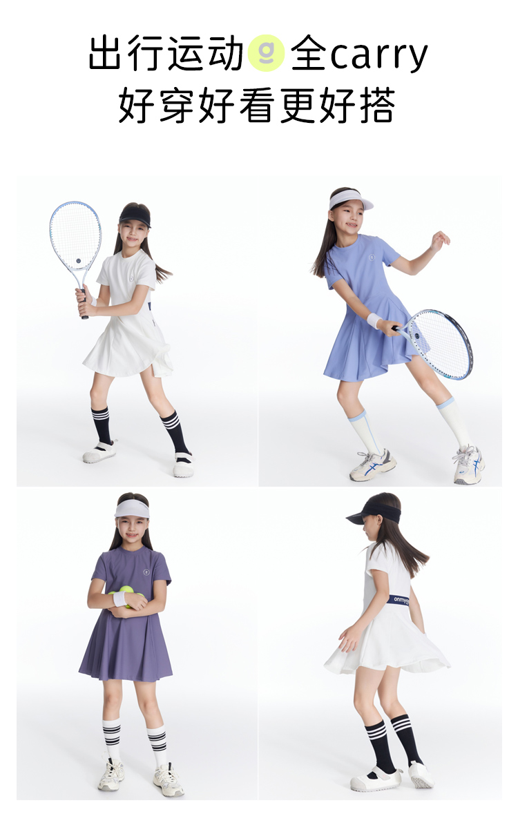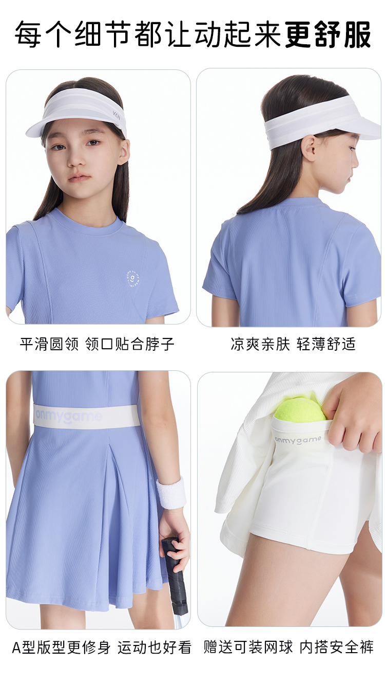 onmygame女童连衣裙凉感弹力儿童网球裙吸湿排汗运动网球服24新款
