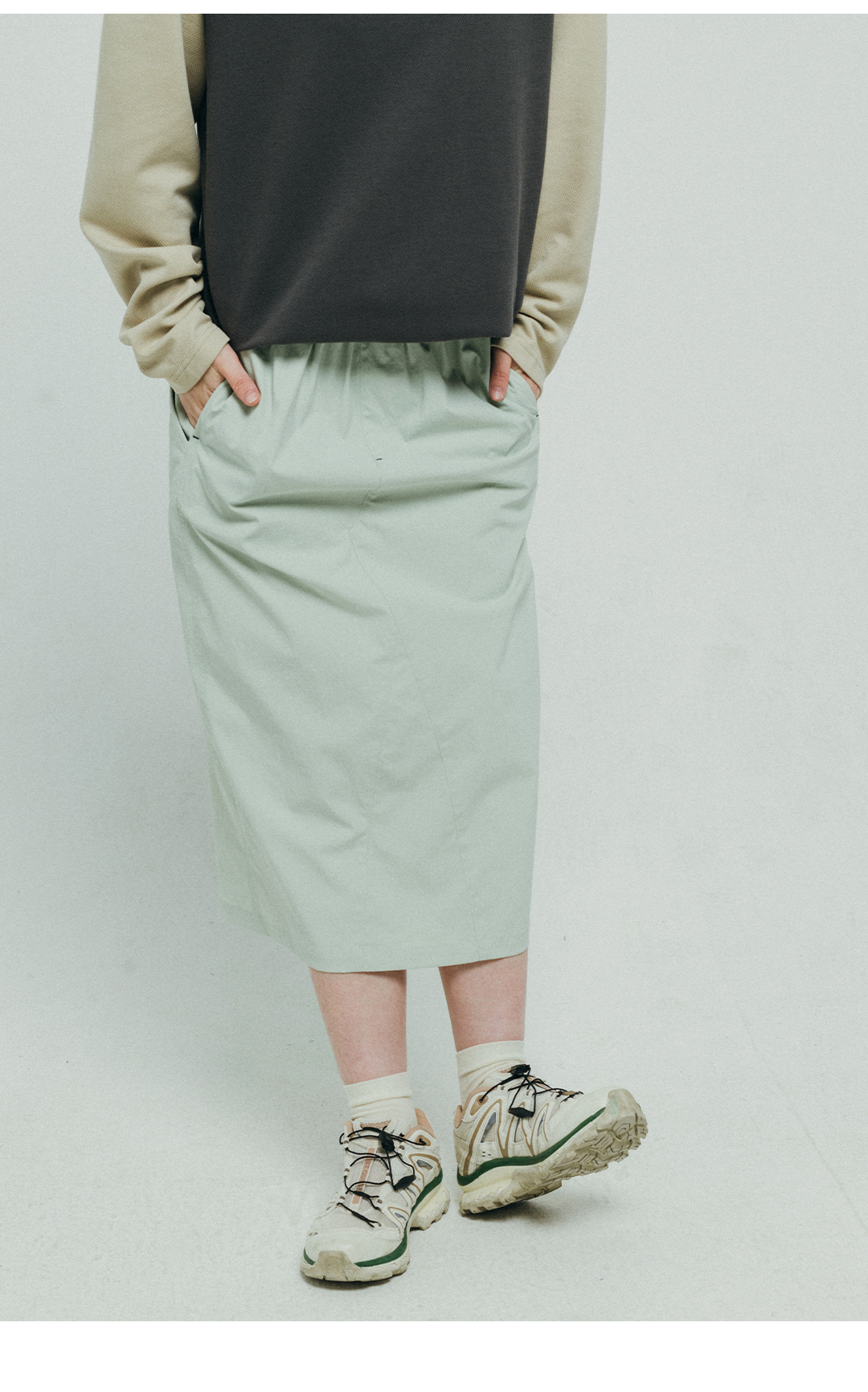 【出游季特惠】ACMEITEM爱棵米 户外防泼水半身裙大口袋弹力松紧休闲长裙子女士GAF3370329E
