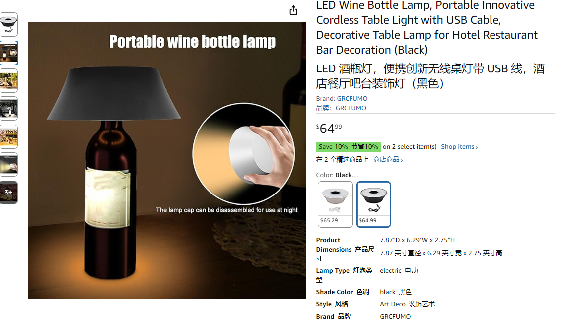 意大利 GRCFUMO 创意LED酒瓶灯 客厅酒店餐吧台装饰充电台灯(不含酒瓶)