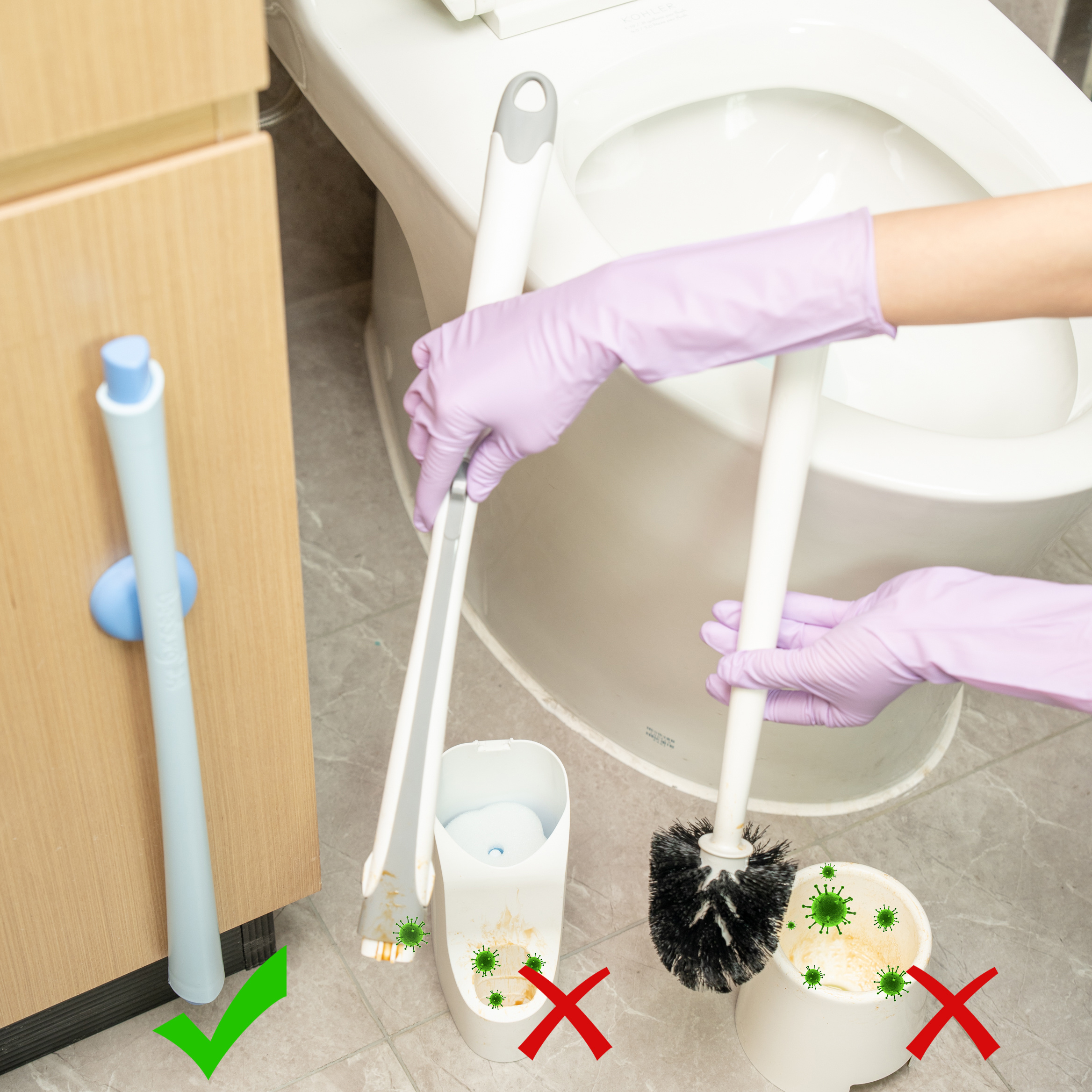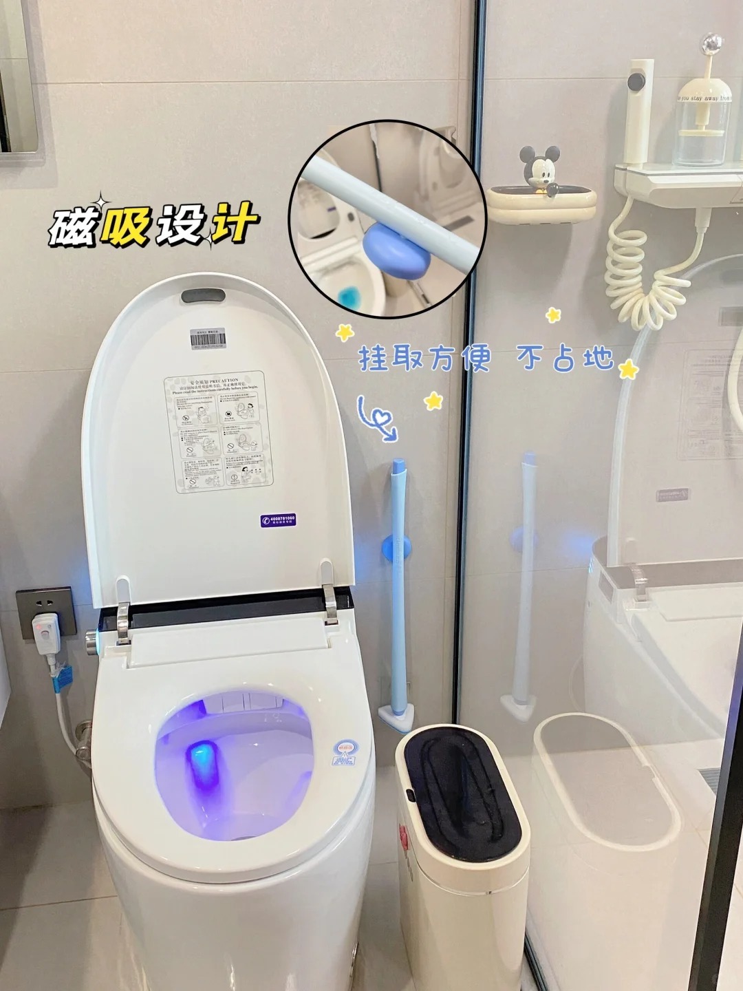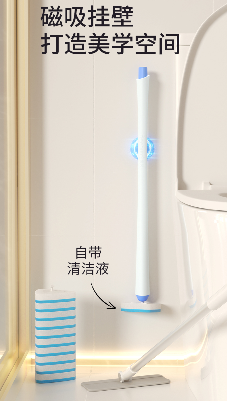 【秉秀第三代磁吸马桶刷】 打造浴室美学空间❤️ ✅三角刷头🔺360°随意转动,无惧各种死角,马桶缝隙都🉑照顾到 ✅磁吸挂壁,免钉免打孔,不伤墙面