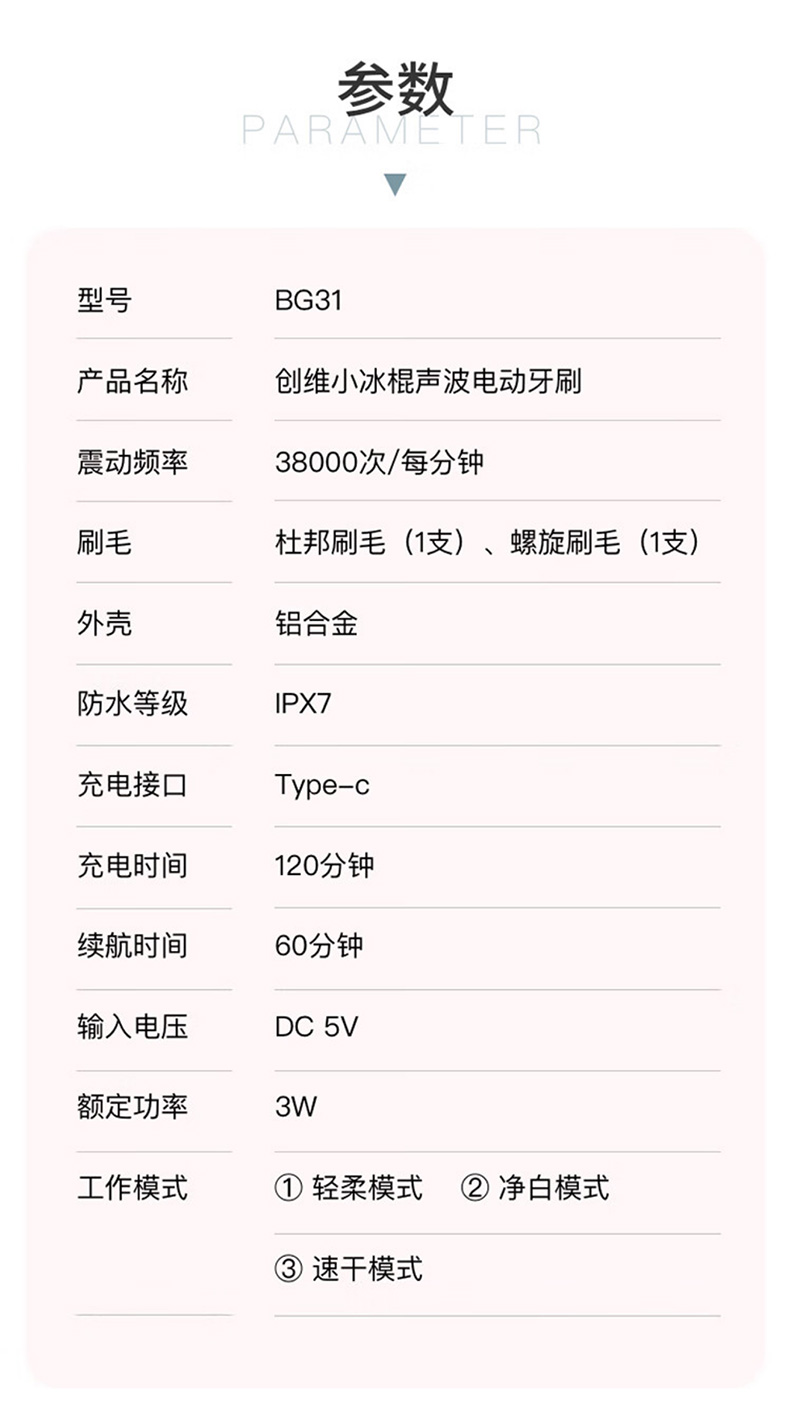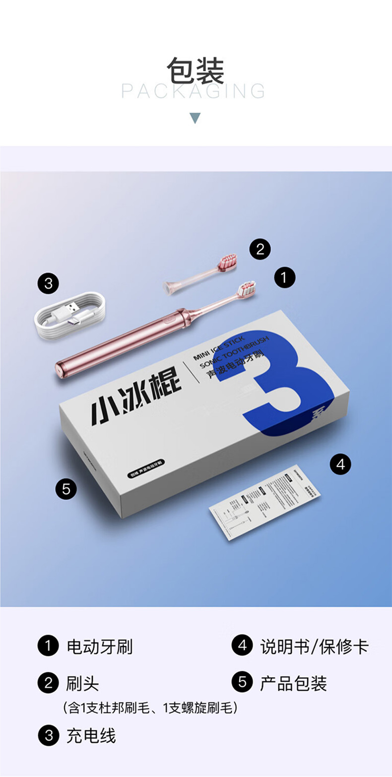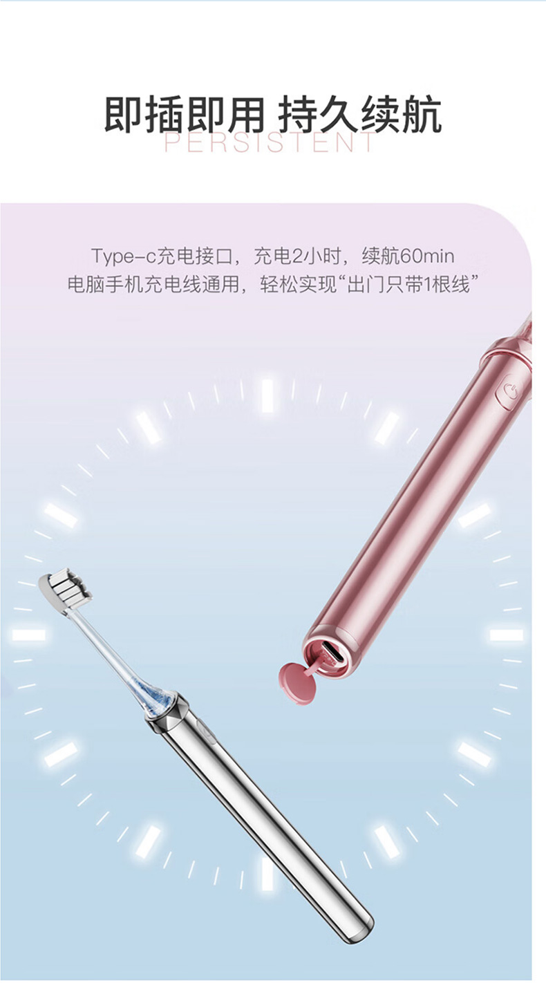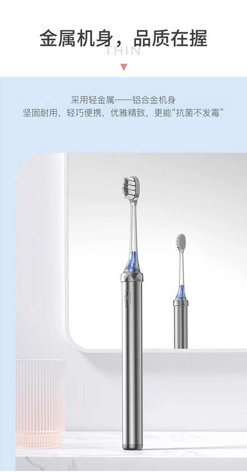 创维(Skyworth)小冰棍电动牙刷成人男女士情侣超声波震动全金属 七夕情人节礼物 玫瑰金