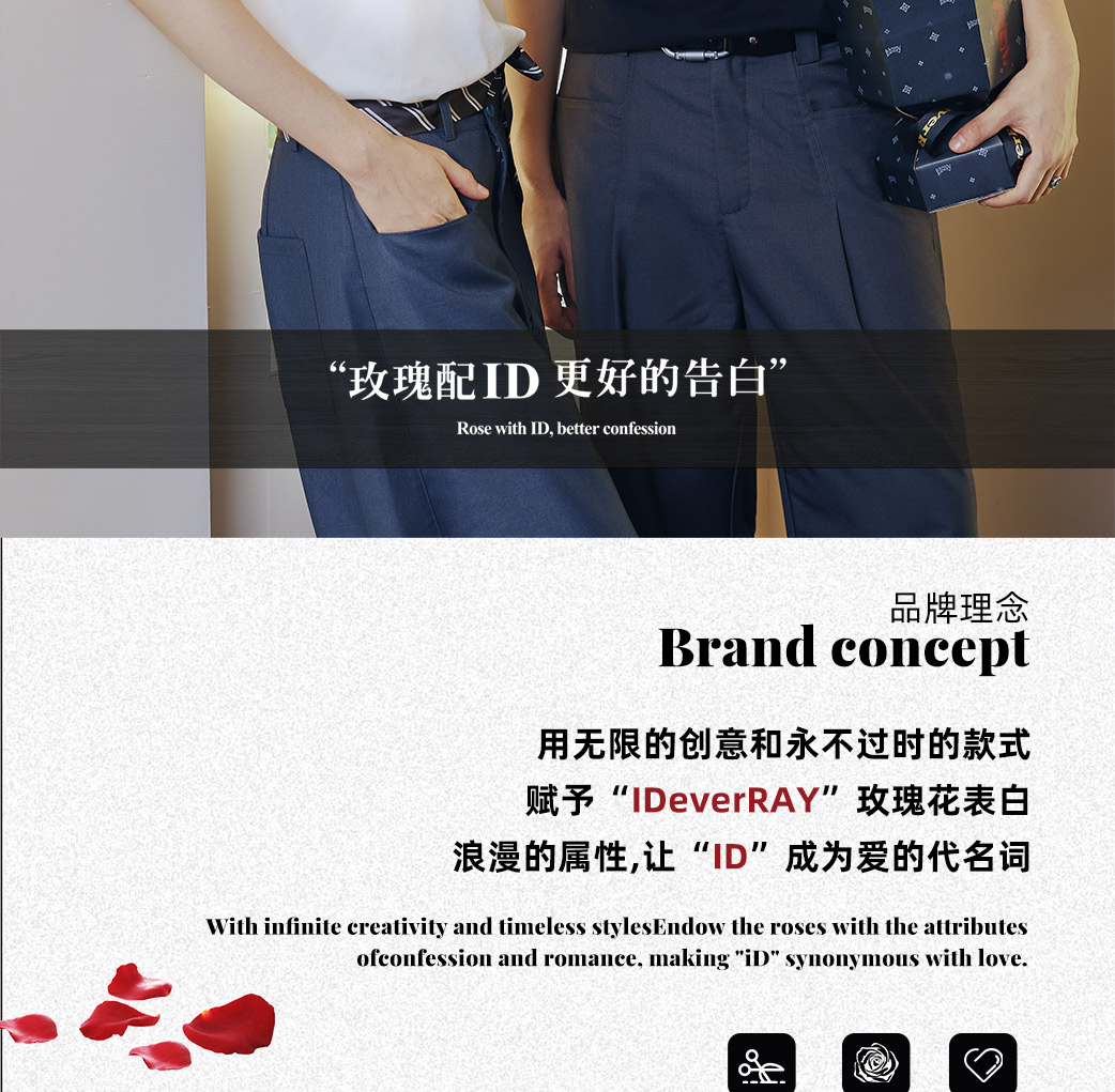 - ❣IDeverRAY简称“ID”,象征独一无二的个人标识,同时与"爱的"谐音,代表爱情的个性化表达 品牌slogan:玫瑰🌹配ID,更好的告白 品牌语言:I ID YOU