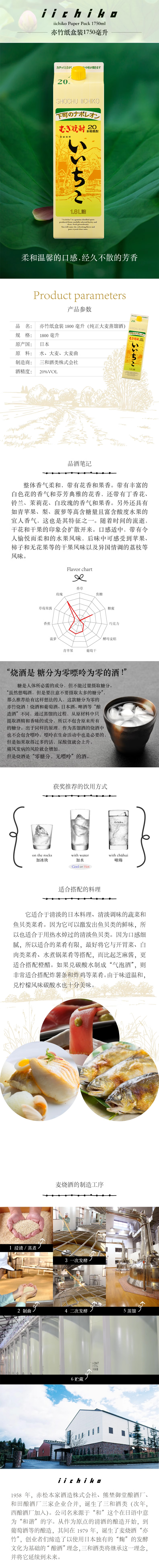 iichiko/亦竹本格烧酒20度1800mlx1盒纸盒装日本进口_dr