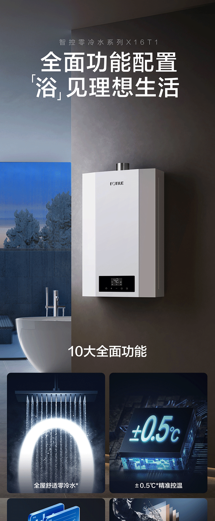 方太(FOTILE)官方16升家用零冷水燃气热水器即开即热强排式防冻恒温安全畅浴一厨多卫JSQ30-X16T1 咨询有礼
