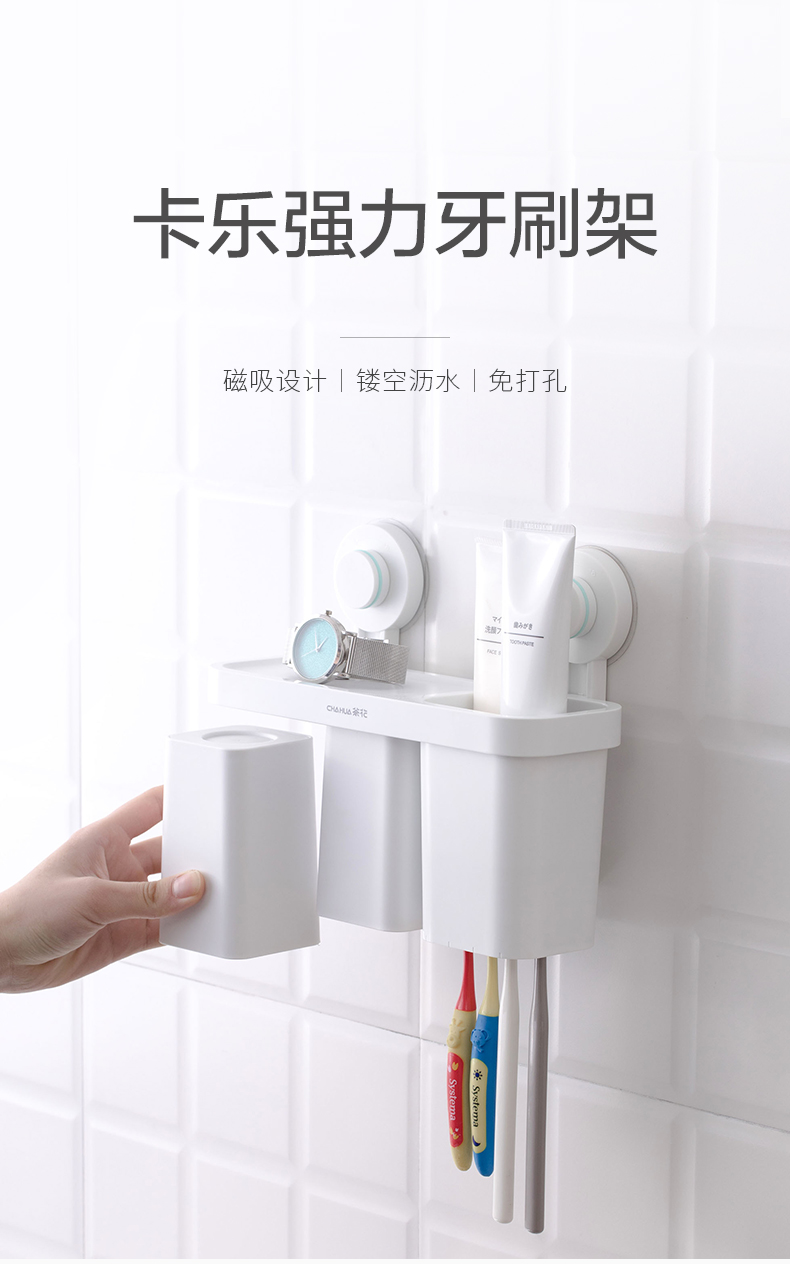 茶花卡乐免打孔吸壁牙刷架