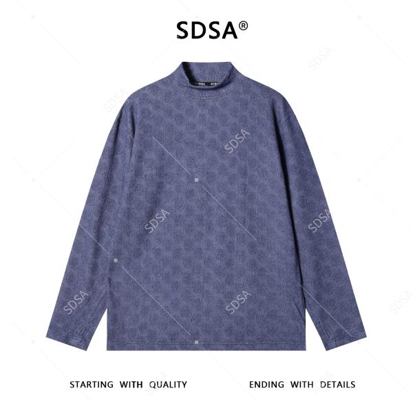 SDSA男士秋冬新款痞帅男装潮牌满印圆形半高领长袖T恤百搭简约
