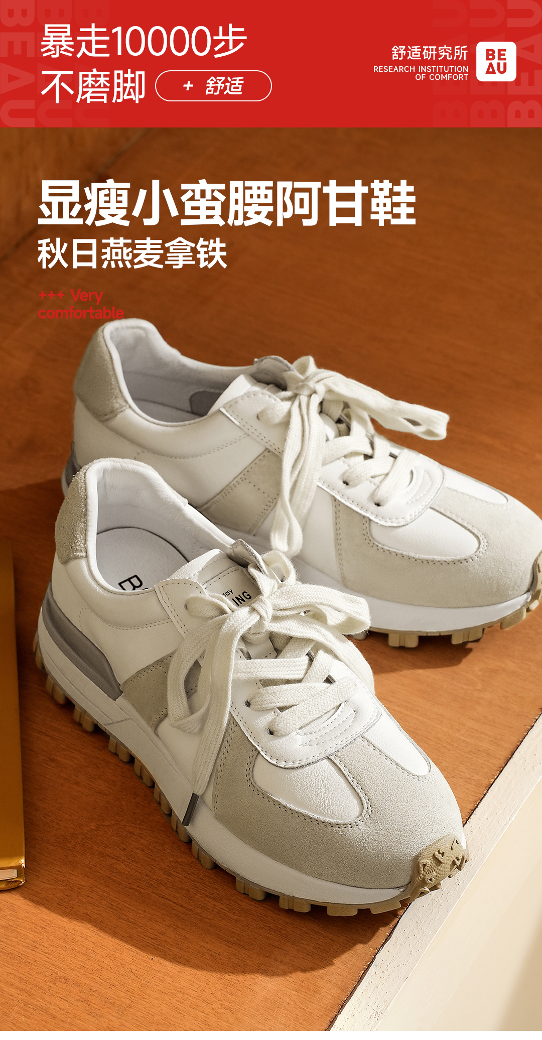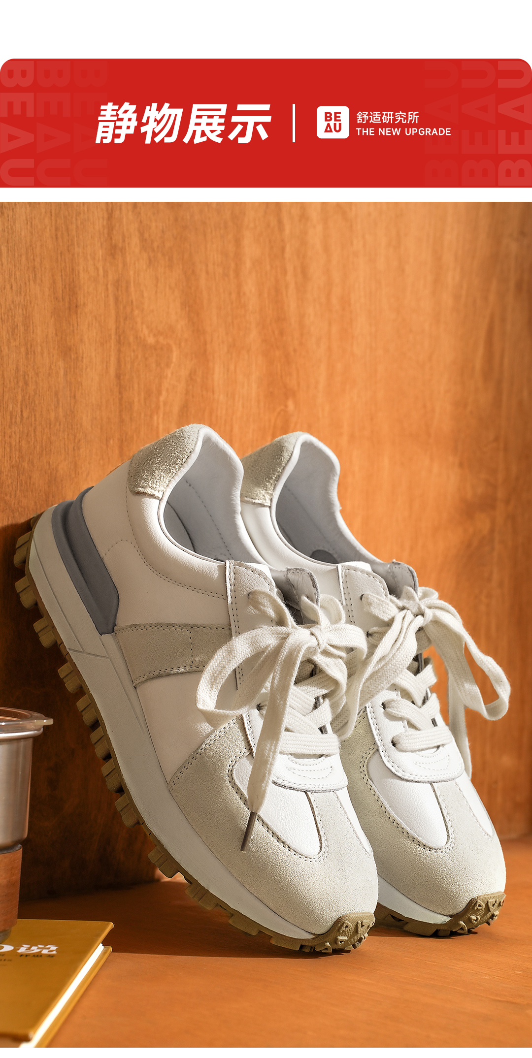 Beau Today 简约德训鞋百搭白灰色运动休闲鞋29255