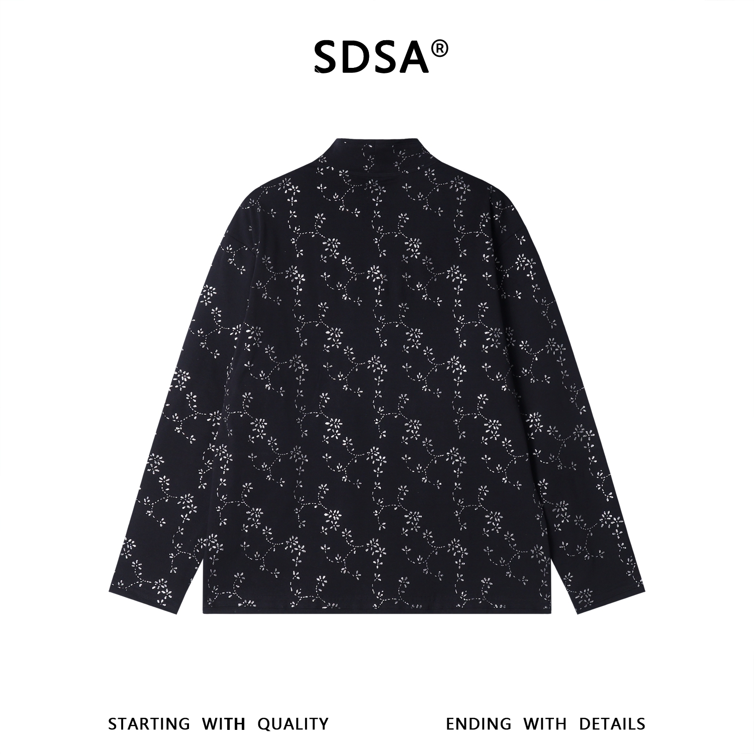 SDSA男士秋冬新款痞帅男装简约撞色满印花卉印花立领长袖T恤显瘦