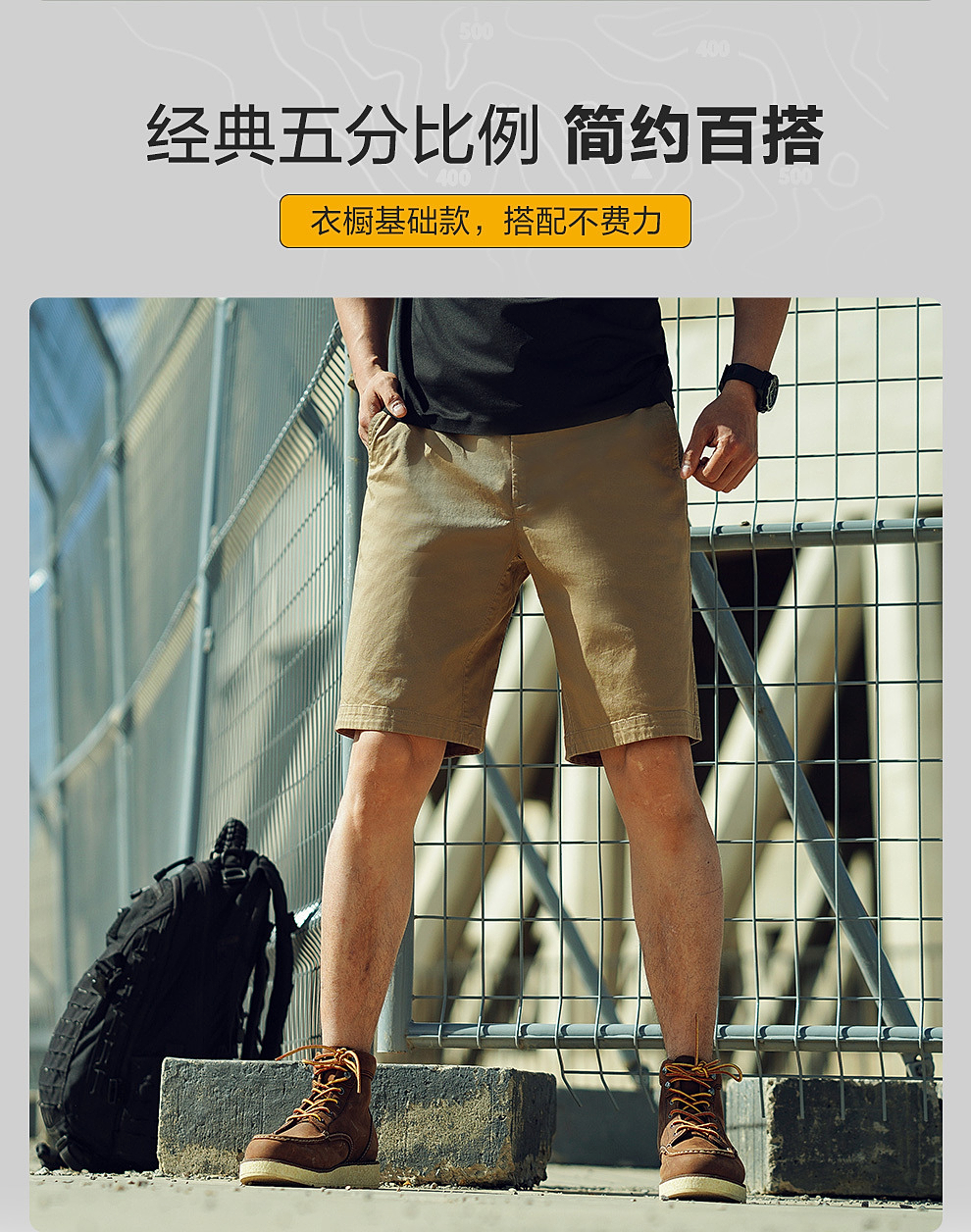 隐之风澜水洗棉质短裤男夏季休闲短裤新款户外口袋短裤男裤