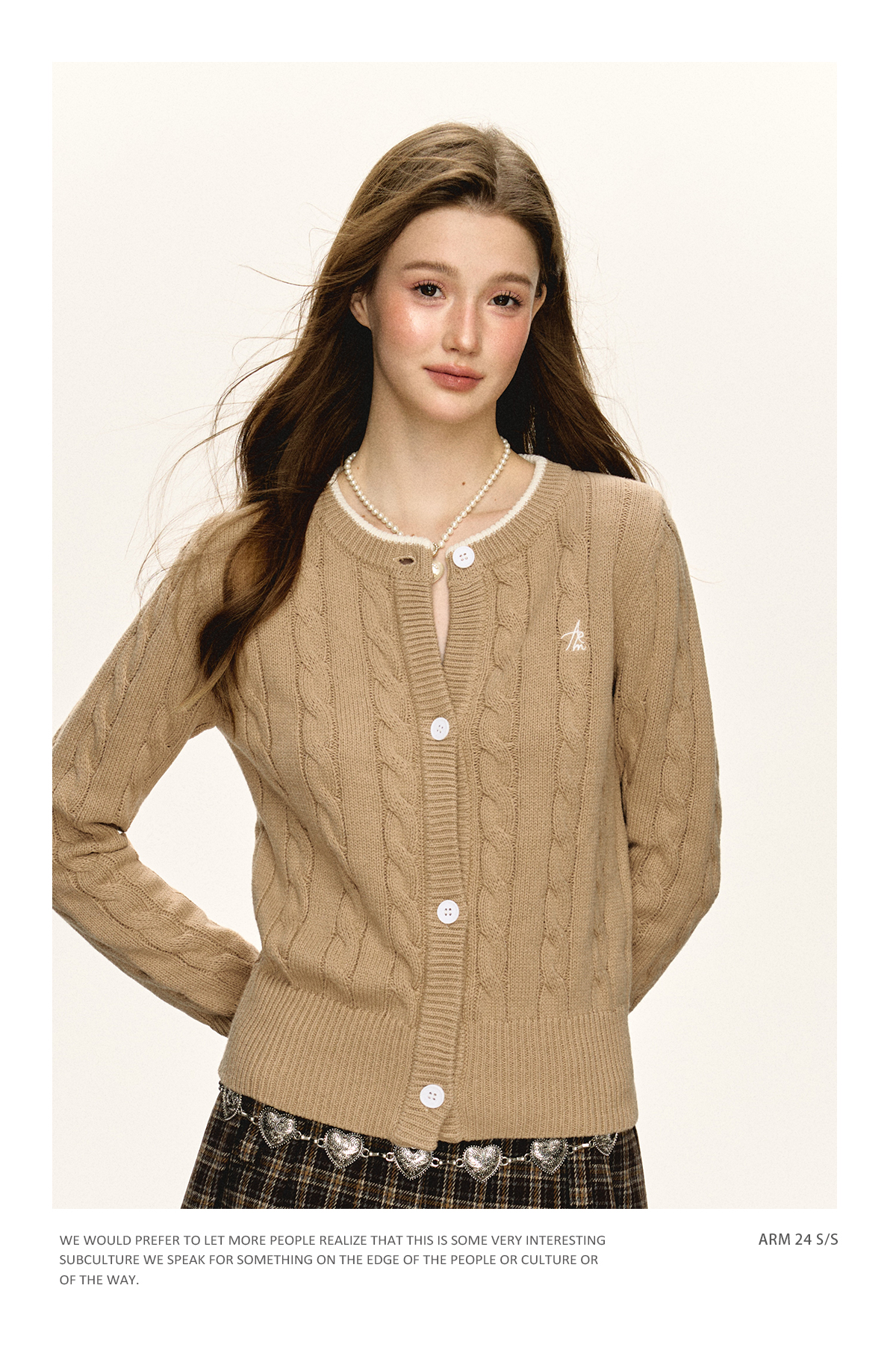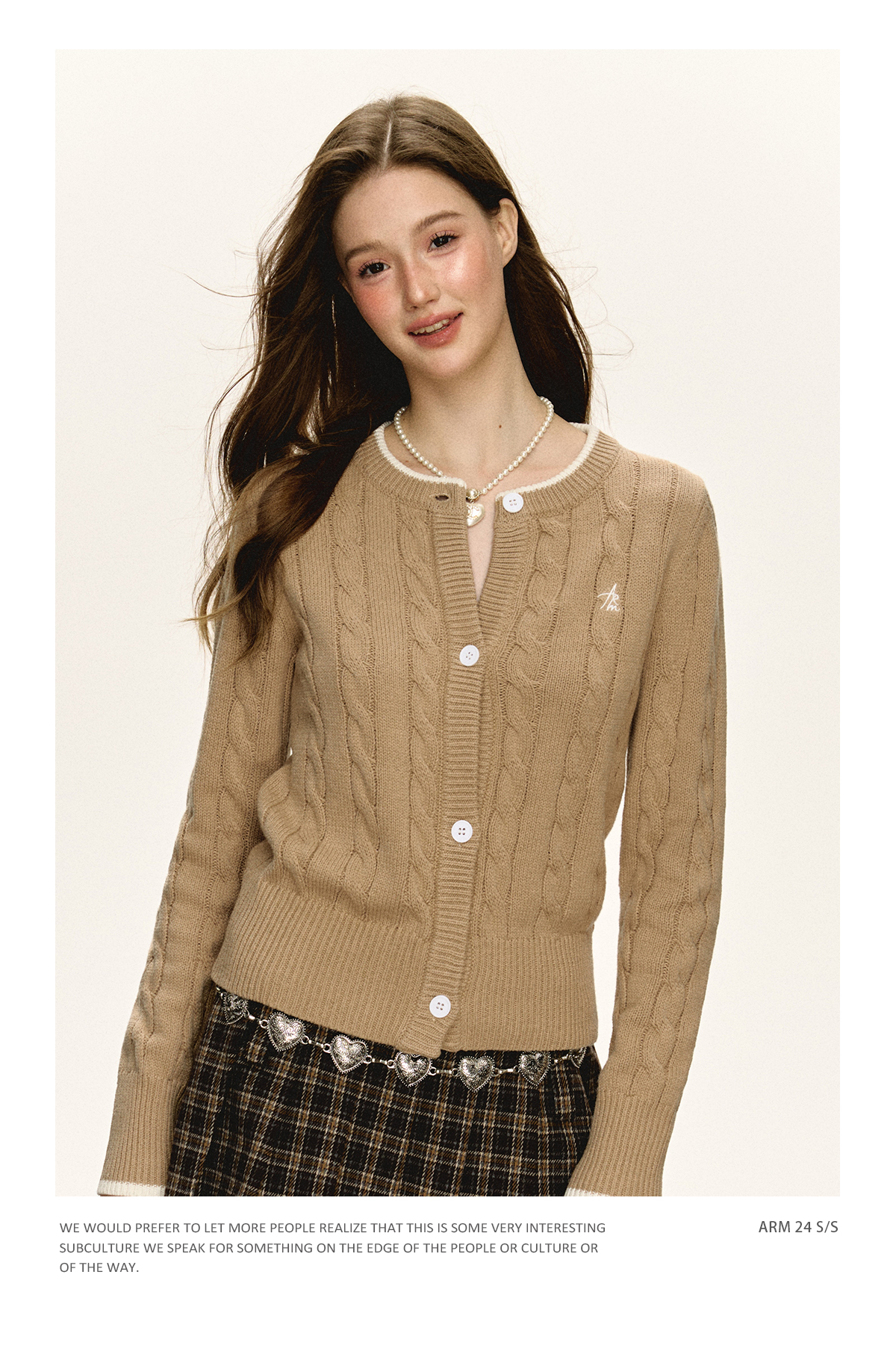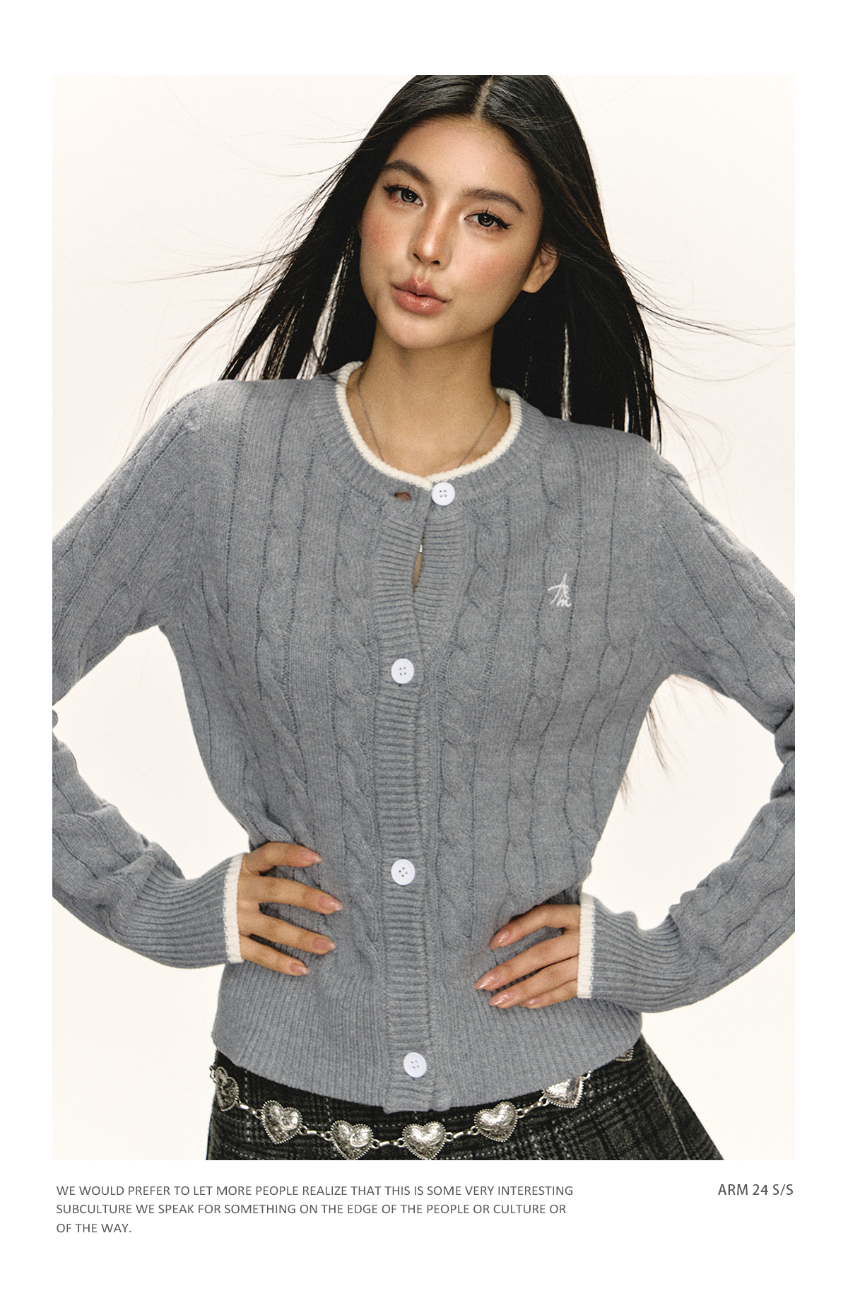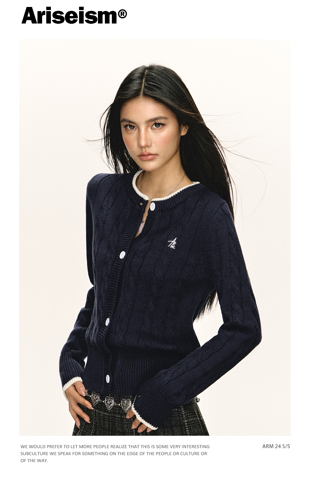 Ariseism 美式复古修身绞花开衫毛衣外套女春秋新款内搭打底上衣