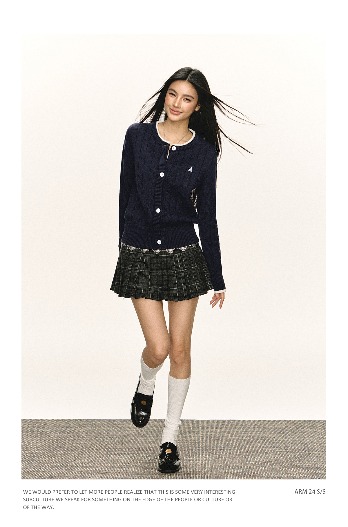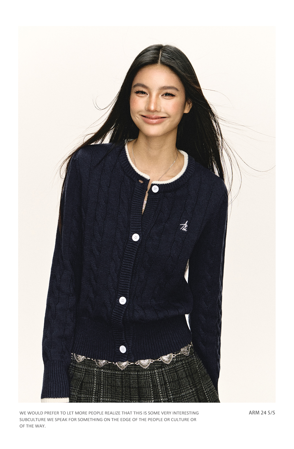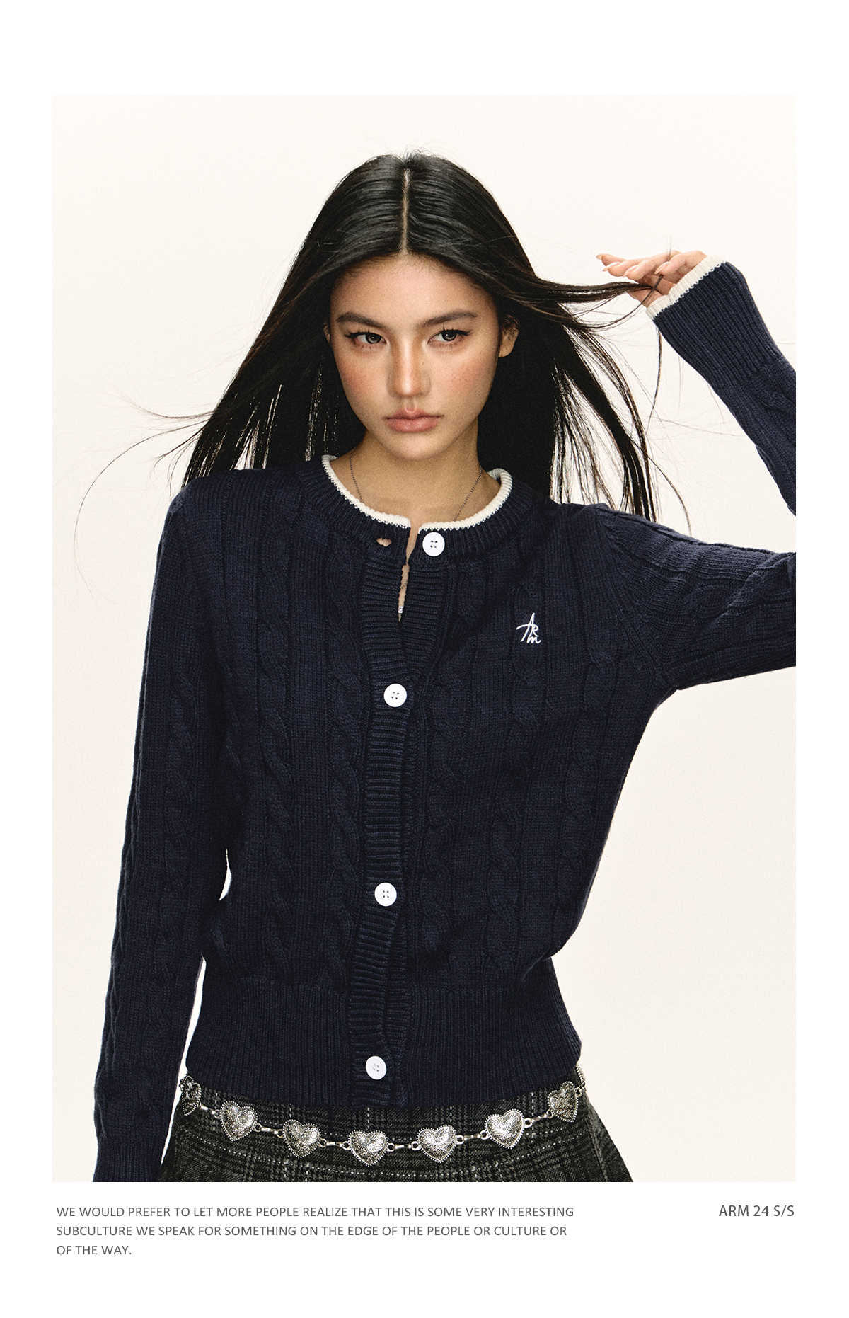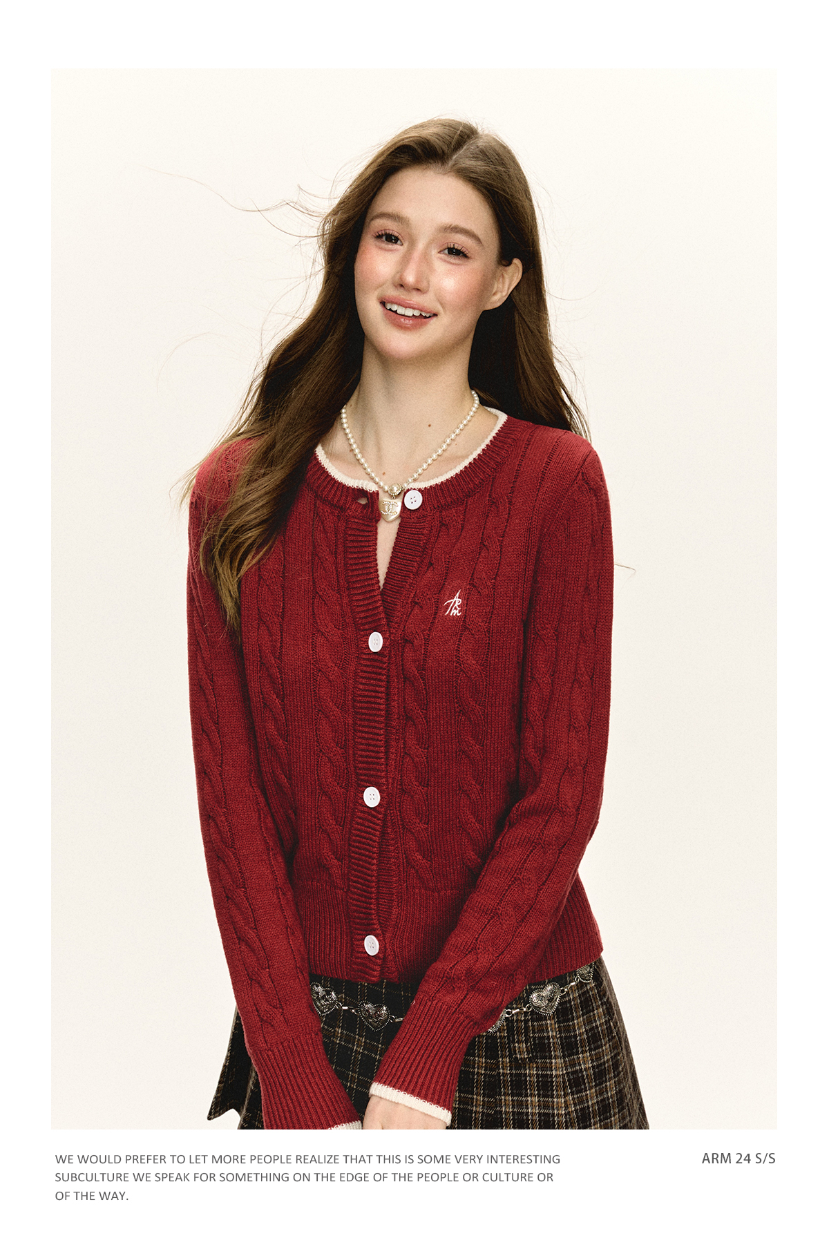 Ariseism 美式复古修身绞花开衫毛衣外套女春秋新款内搭打底上衣