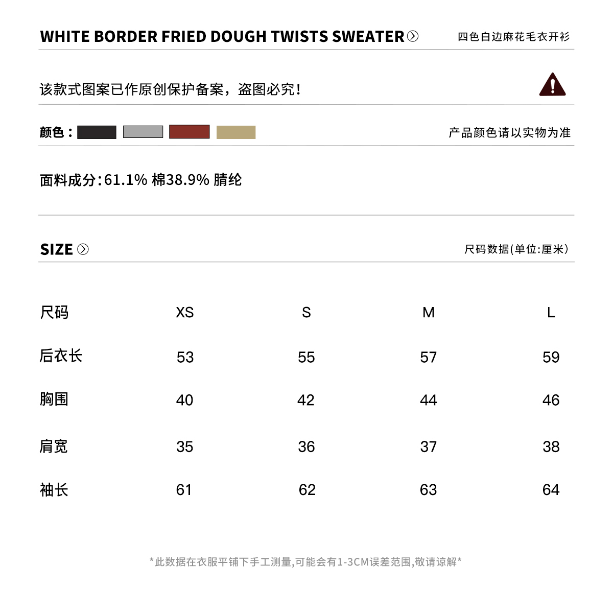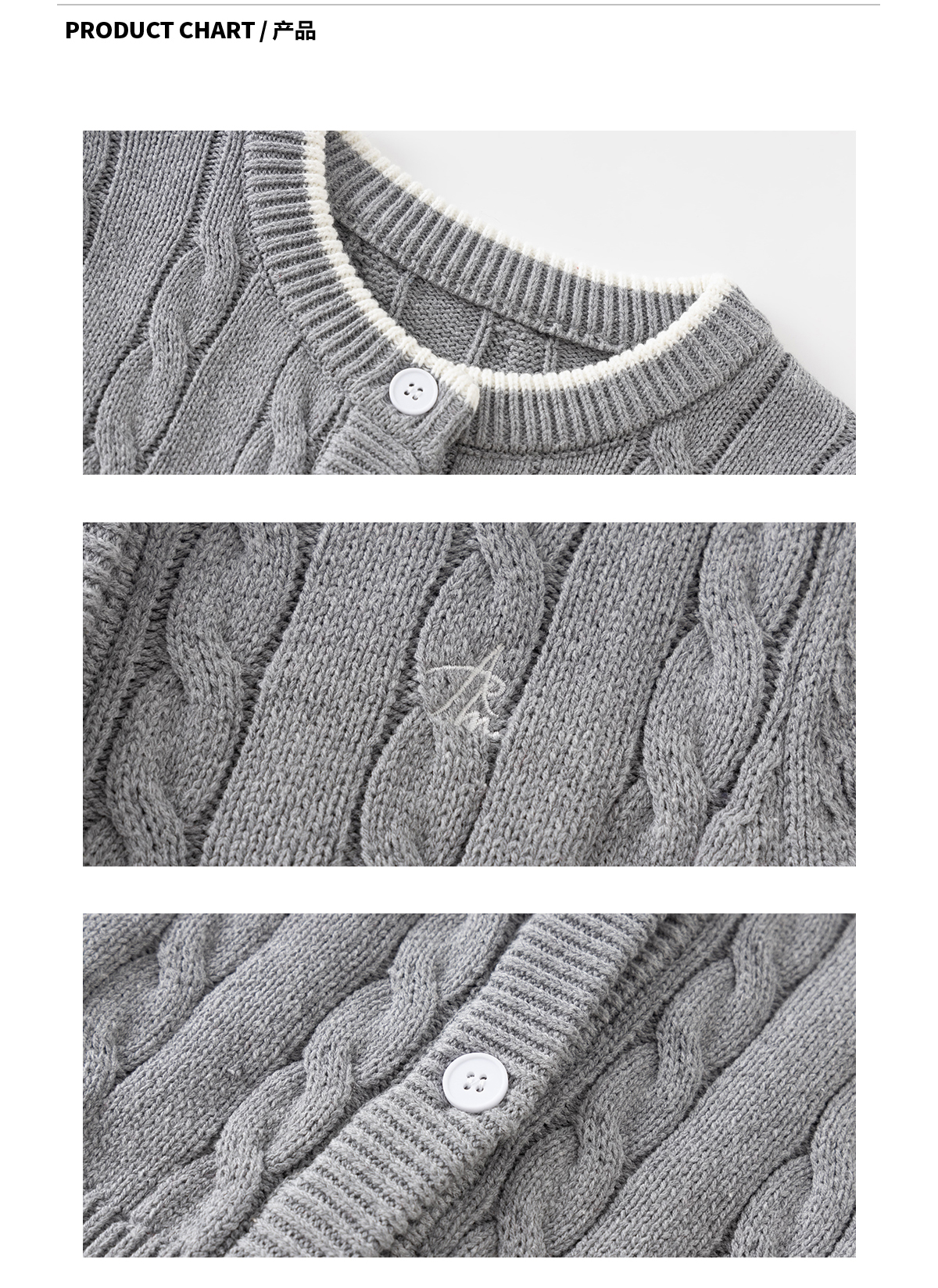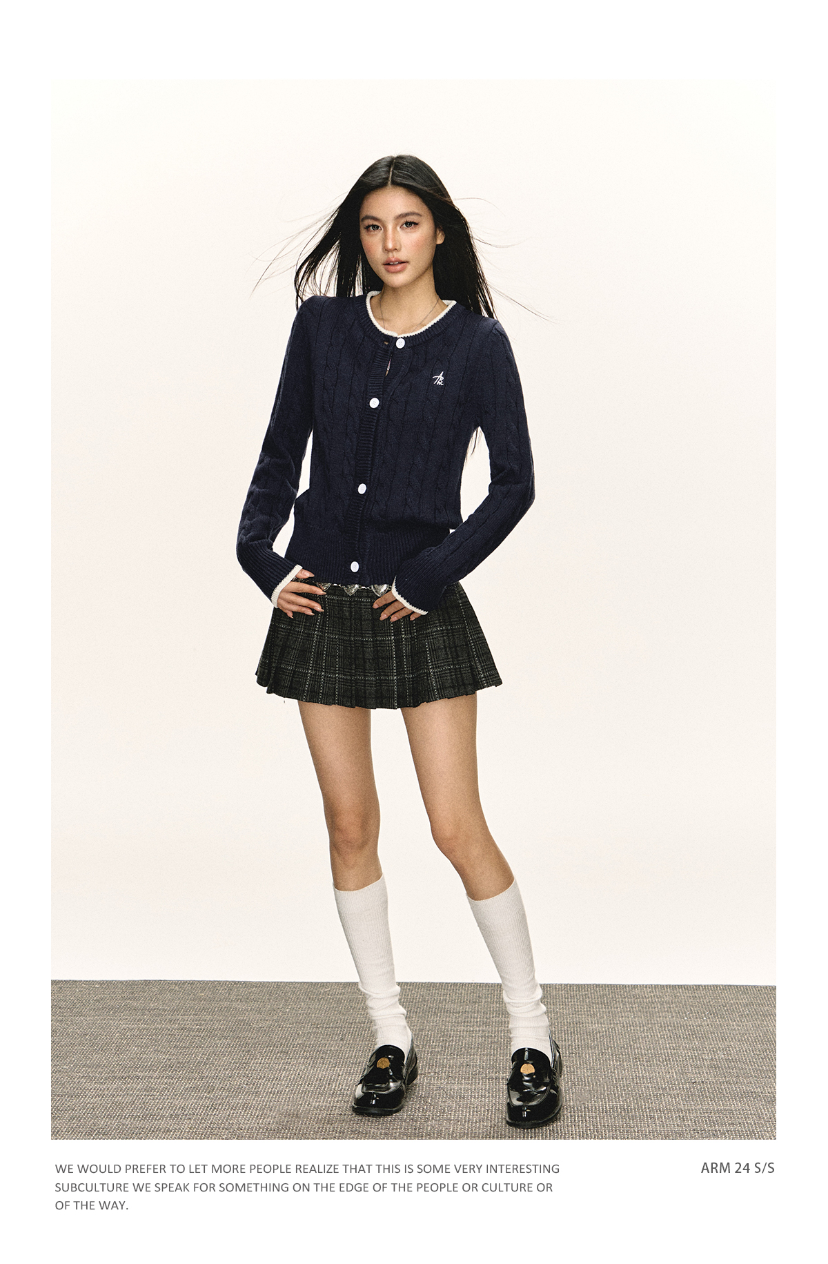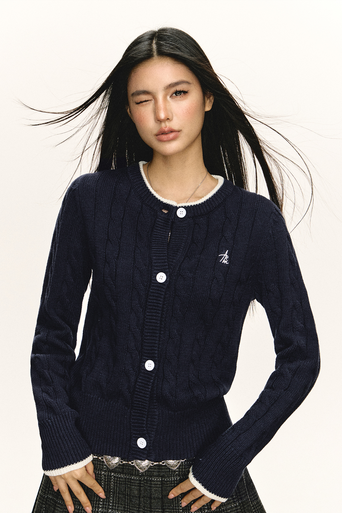 Ariseism 美式复古修身绞花开衫毛衣外套女春秋新款内搭打底上衣