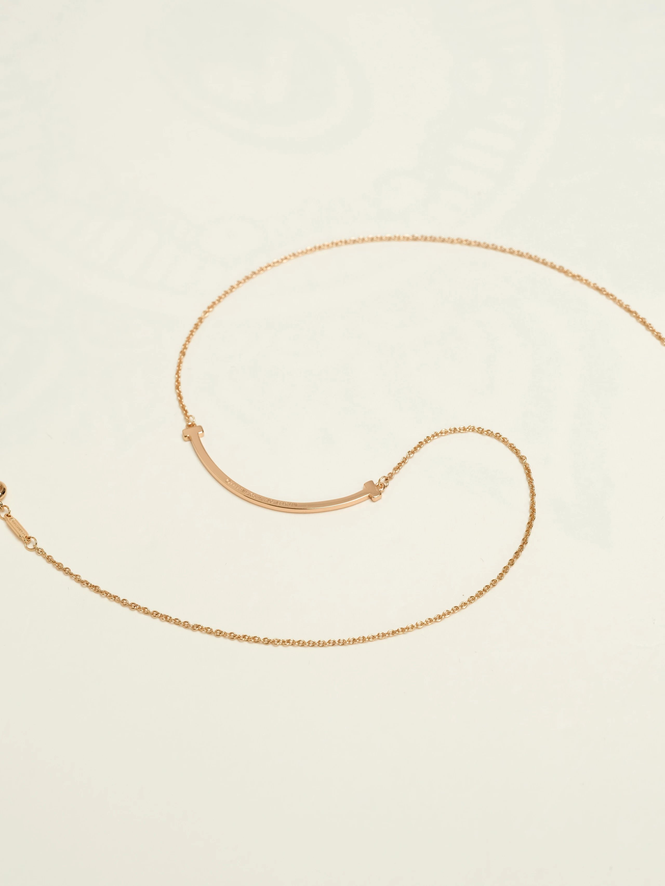 项链曲线优雅,散发着恒久的精致魅力。Tiffany T Smile系列彰显快乐寓意和真挚情感。叠搭蒂芙尼不同尺寸和长短的项链,打造别致造型