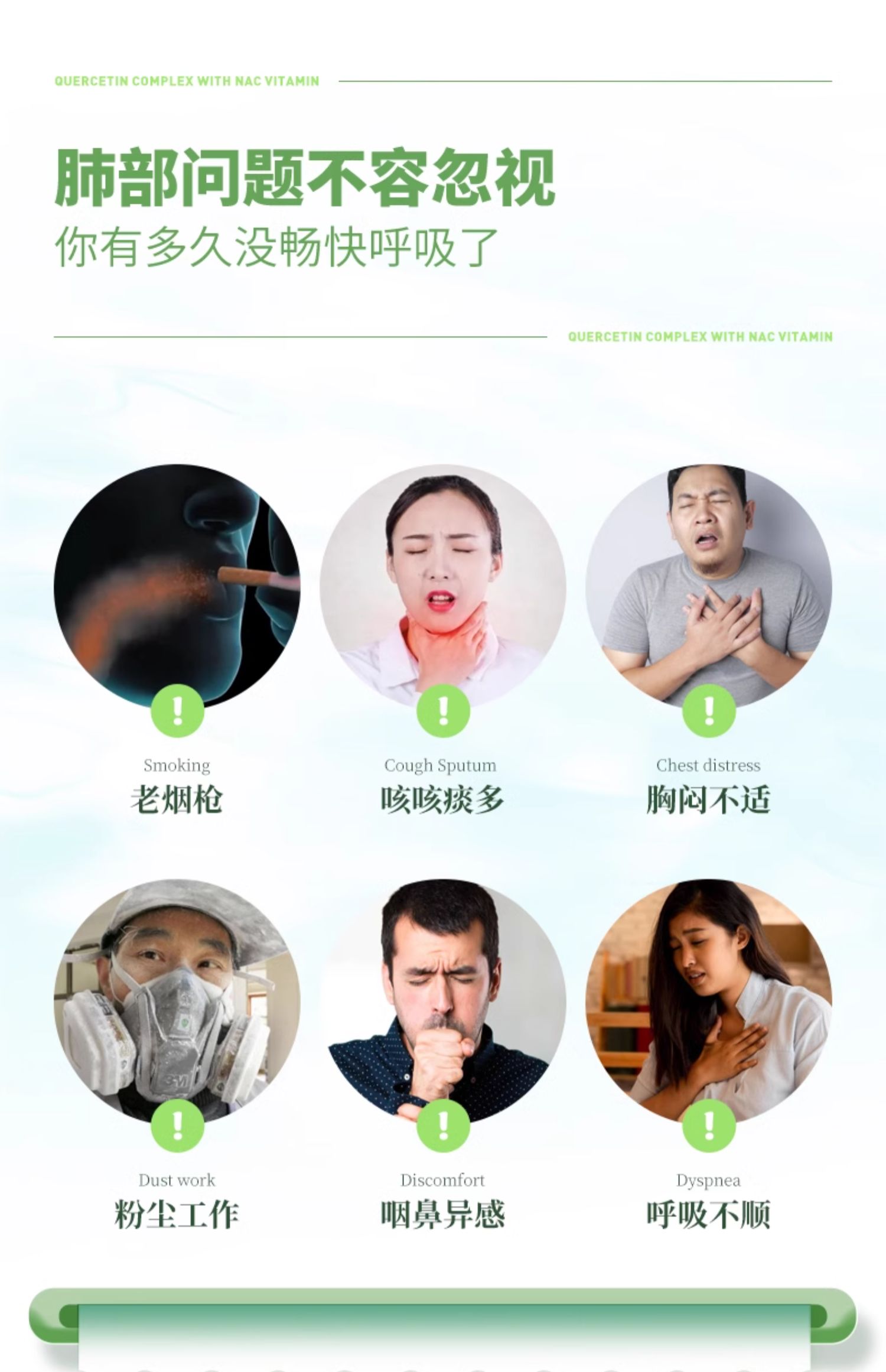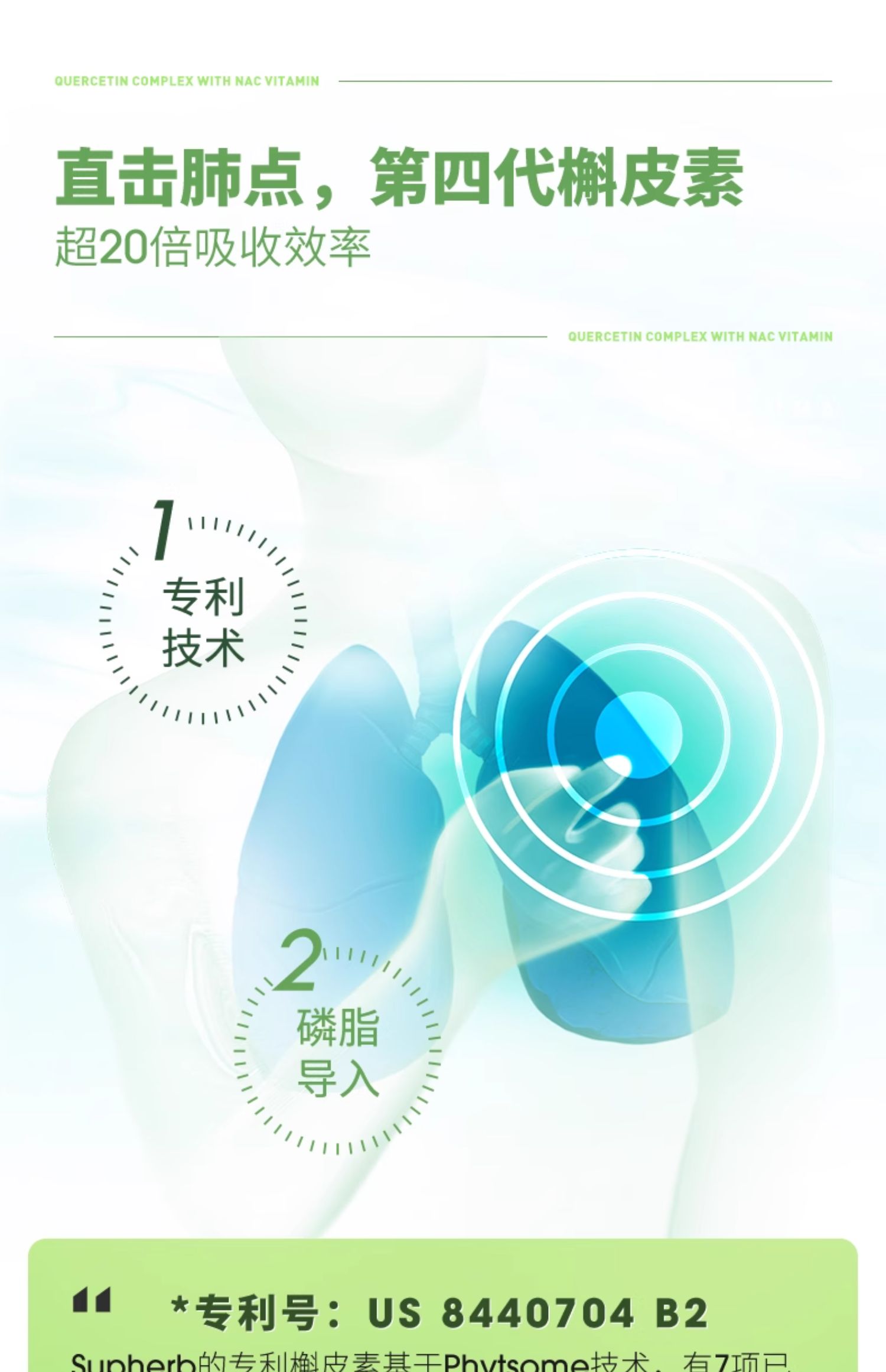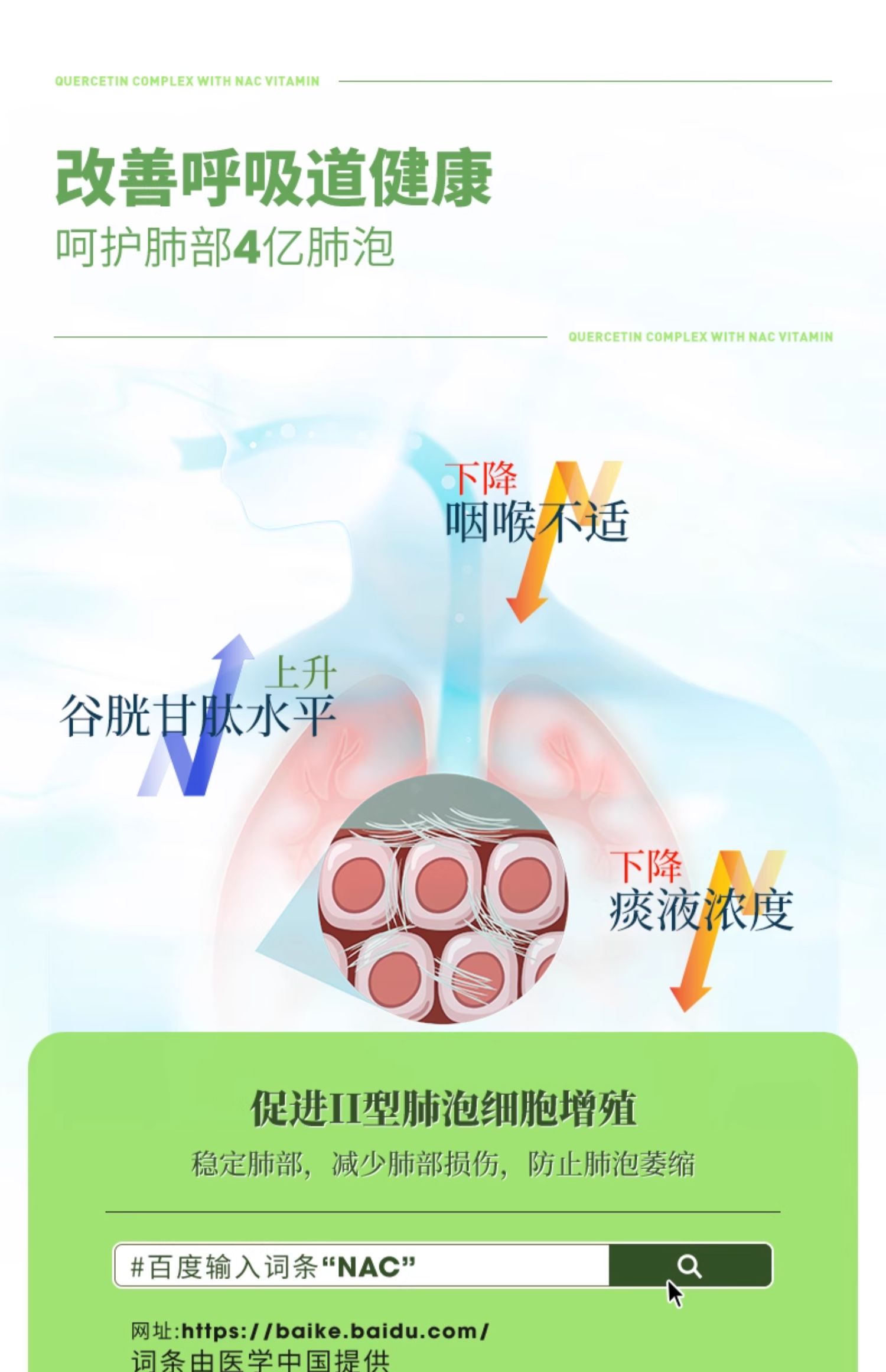 素赫伯专利NAC槲皮素胶囊 成人儿童肺部动力呼吸系统养护咽喉保健