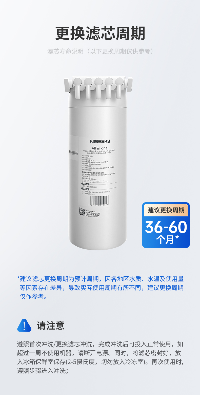 WISESKY黑积木C2全厨盒子原装活性炭净水机一体式炭纤维复合滤芯WSKP-100-C