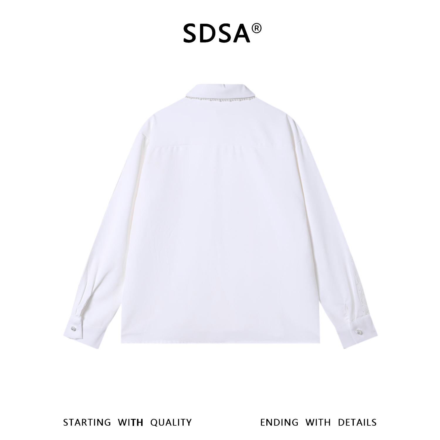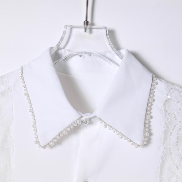SDSA男装2026新款高贵轻奢珍珠领蕾丝拼接宽松长袖衬衫百搭时尚