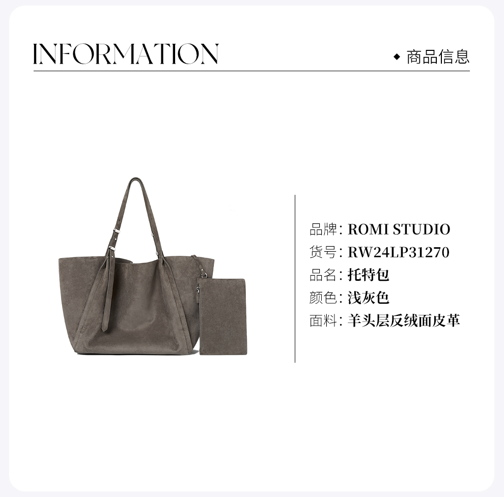 ROMI STUDIO“包容自我”头层羊皮反绒面大容量托特包 RW24LP31270