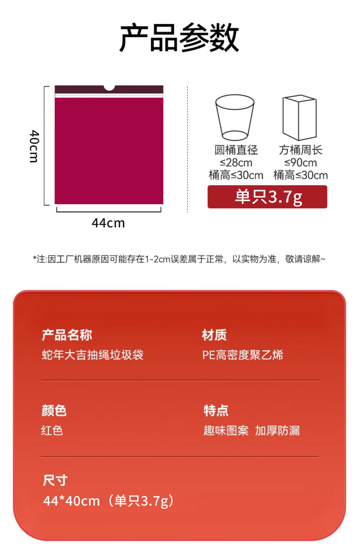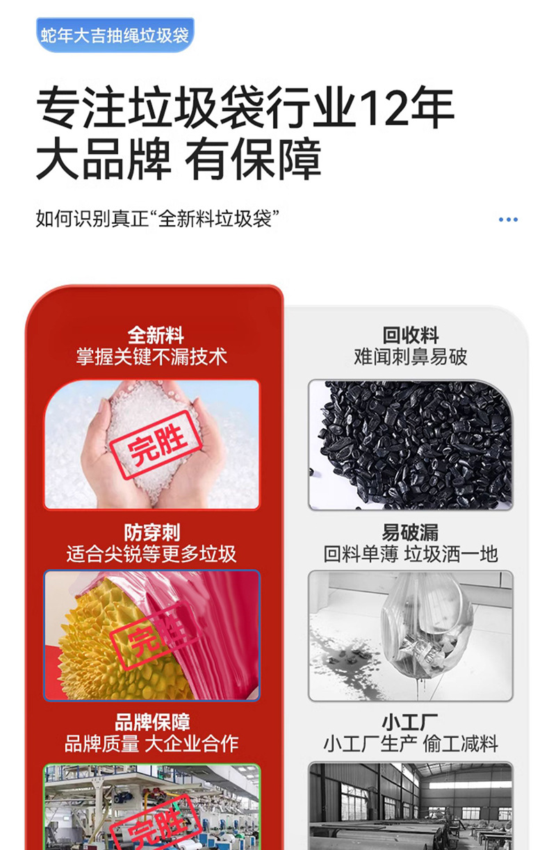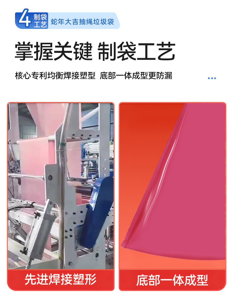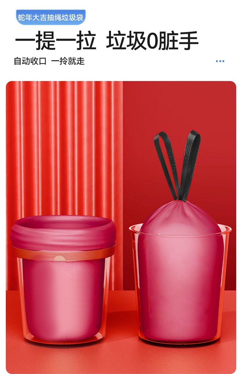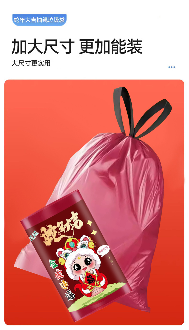100只装新年垃圾袋 加厚厨房客厅用品加大不易破居家日用手提式抽绳清洁工具垃圾袋
