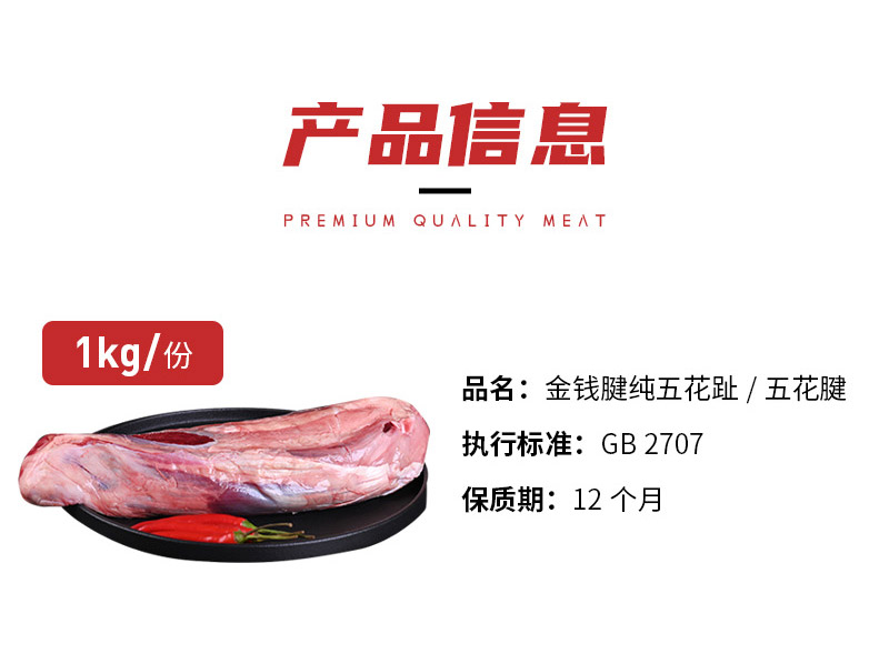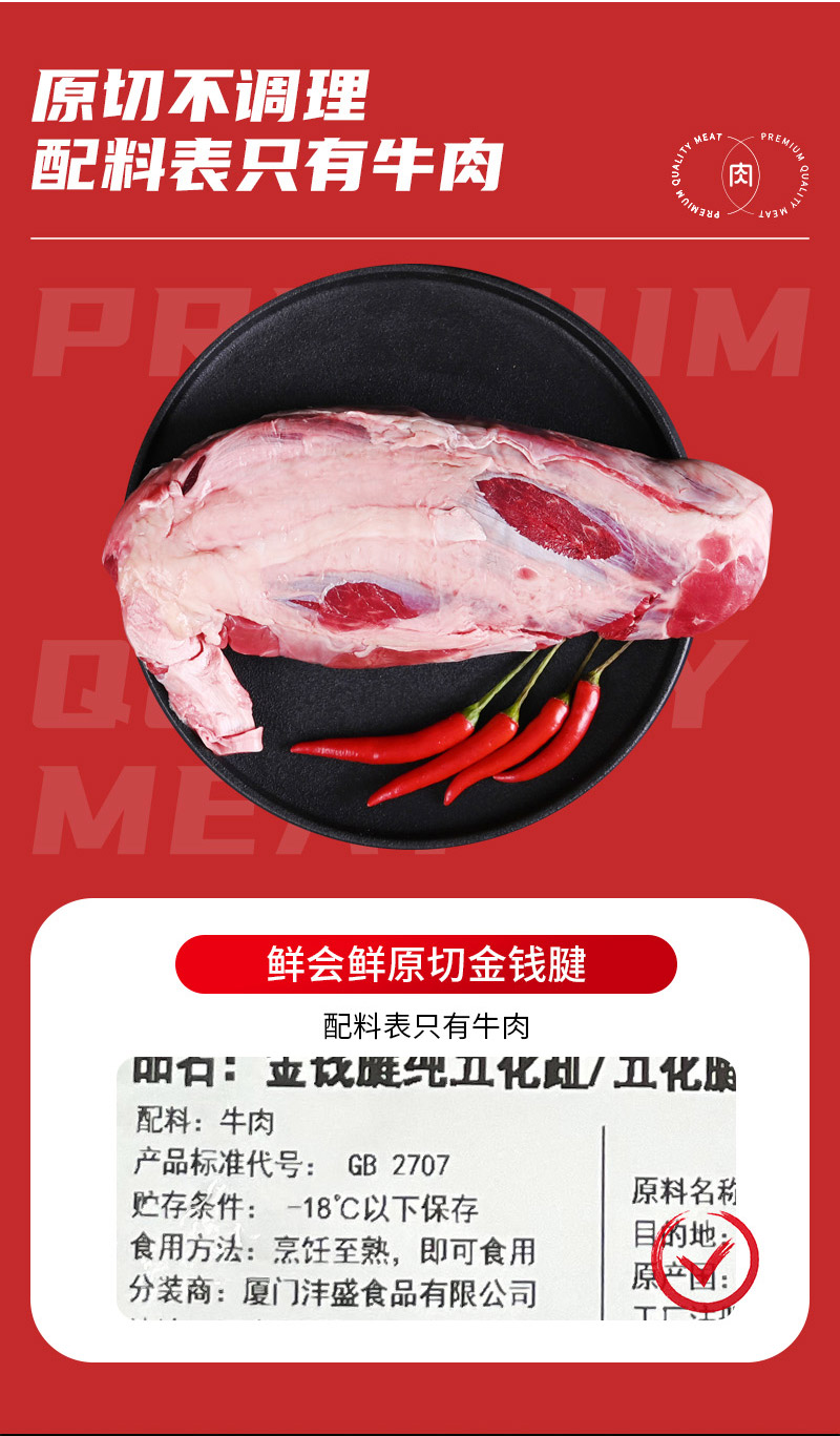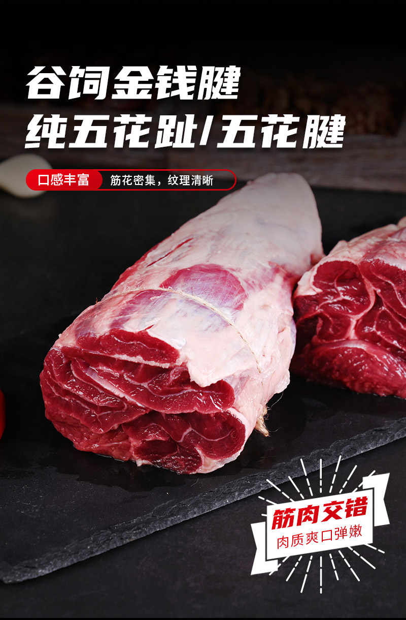 鲜会鲜美国/澳洲进口原切谷饲金钱腱牛腱子肉生鲜五花趾五花腱芯牛肉1kg 生鲜不支持七天无理由