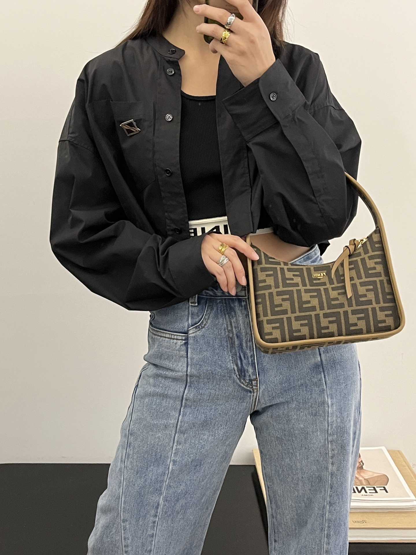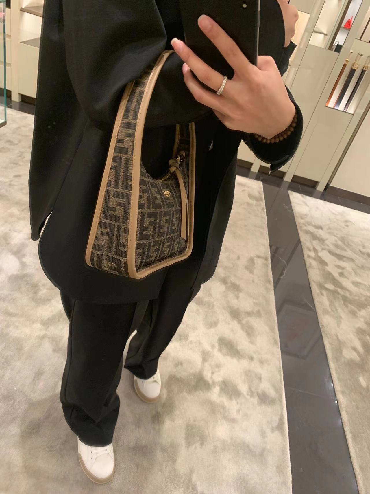 新Fendessence 迷你hobo包,经典老花可手提可做腋下包,日常又百搭,包身超级轻便容量却无限大噢,重量约等于0,实用也可爱,搭配小皮结拉链简单又特别,出街最爱的小包了。