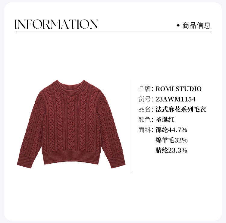 ROMI STUDIO“新年限定”“腔调穿搭”羊毛混纺针织儿童毛衣23AWM1154