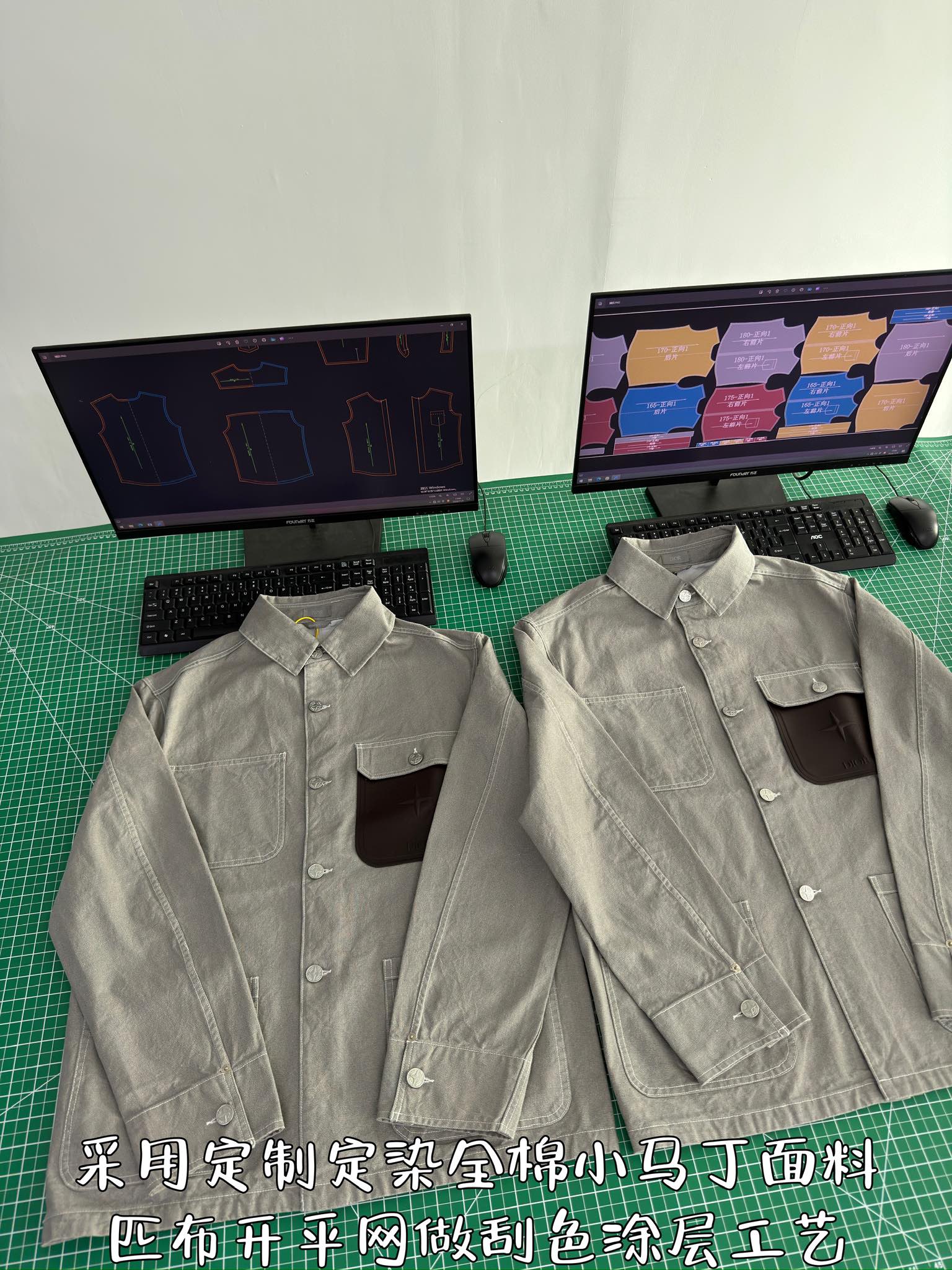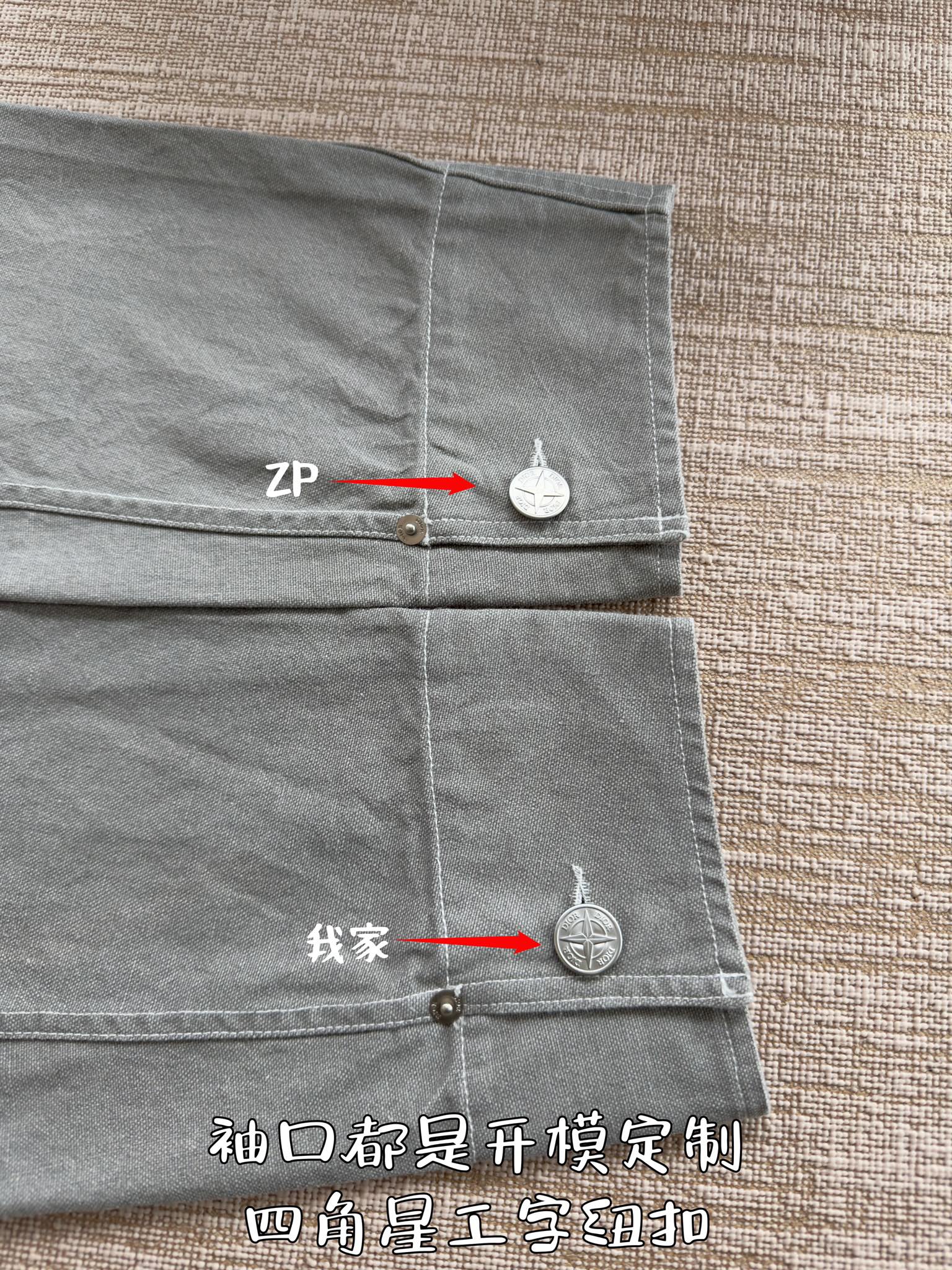 前幅右侧口袋定制网花四角星字母皮牌,开模定制四角星工字扣,内里人字车车大织麦