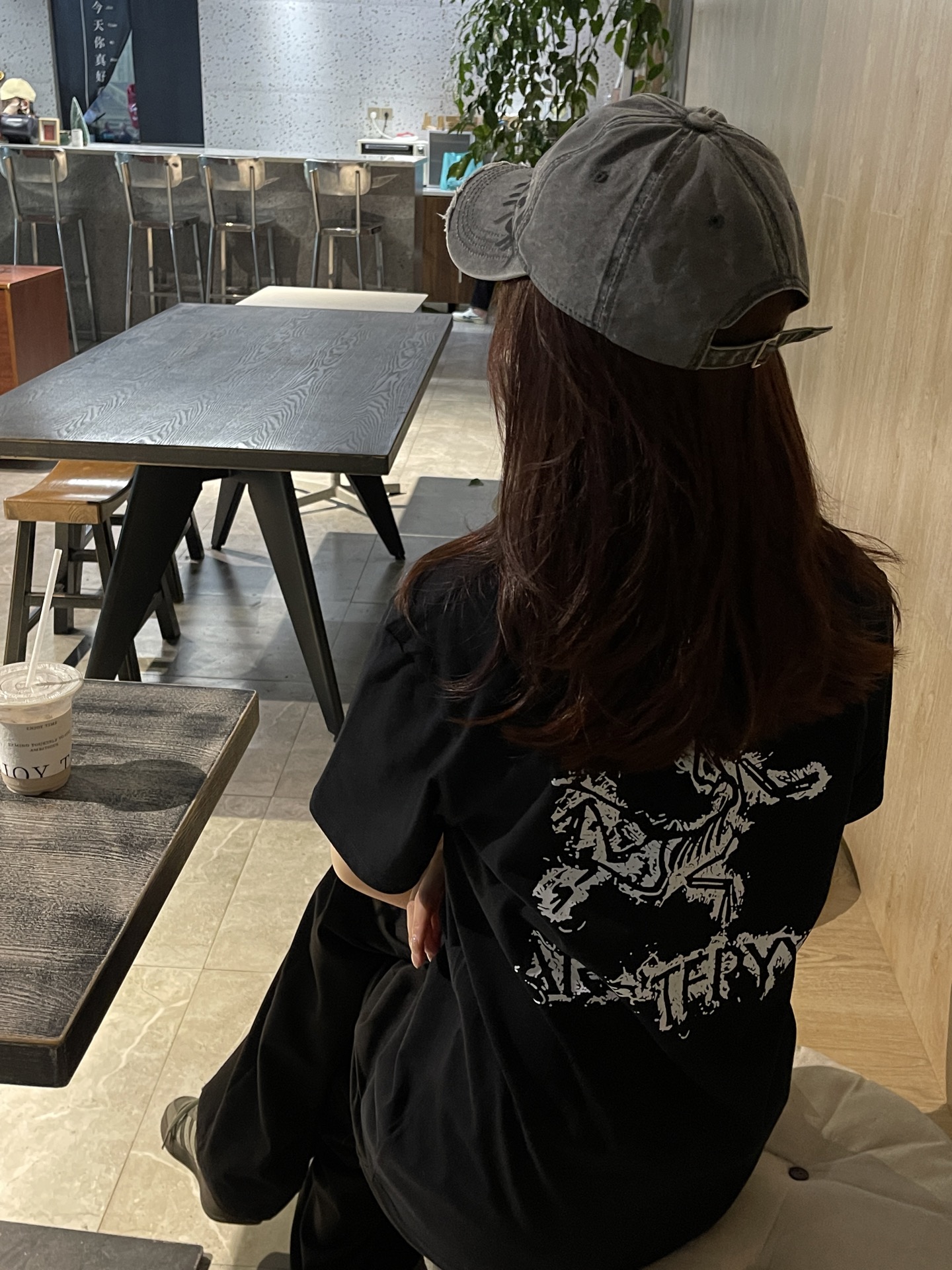始祖马ARC字母重影印花logo休闲百搭圆领T恤